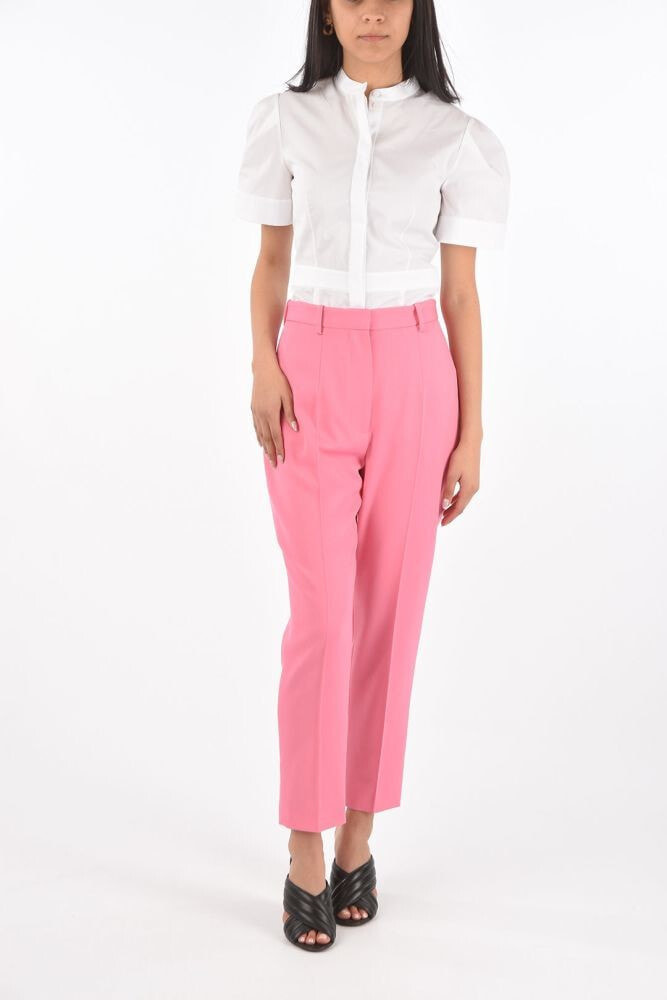Buttons, Zip closure, Hook-and-eye closure, Spring-Summer, Pink, 3 pockets, Pleated detailing, Belt loops, Made in Italy, Virgin Wool, Front closure, Hidden closure, Flat front, High-rise waistline, SUMMER TOP PIX, PINK ‘N GREEN, FESTIVE LOOK, P378338