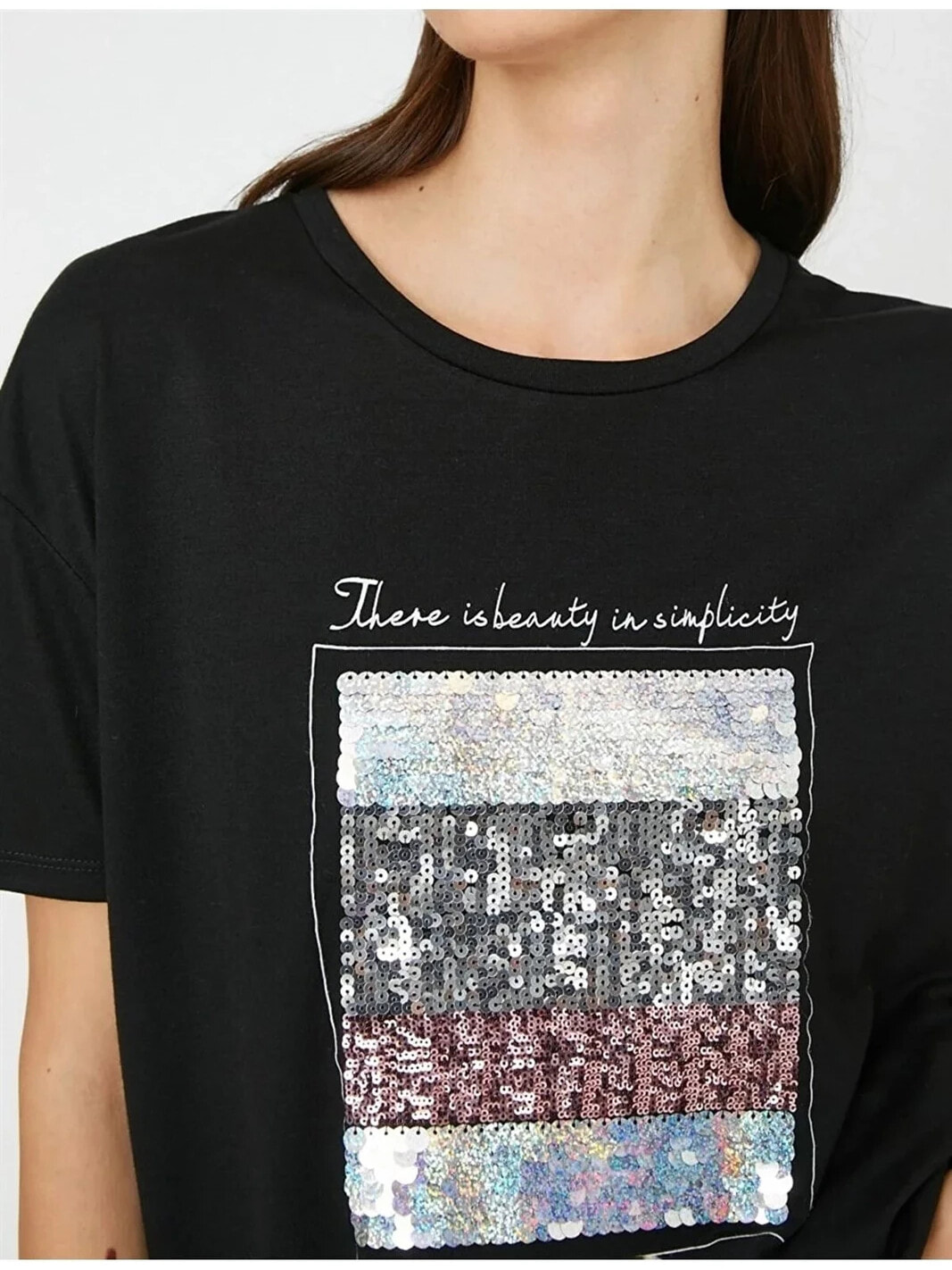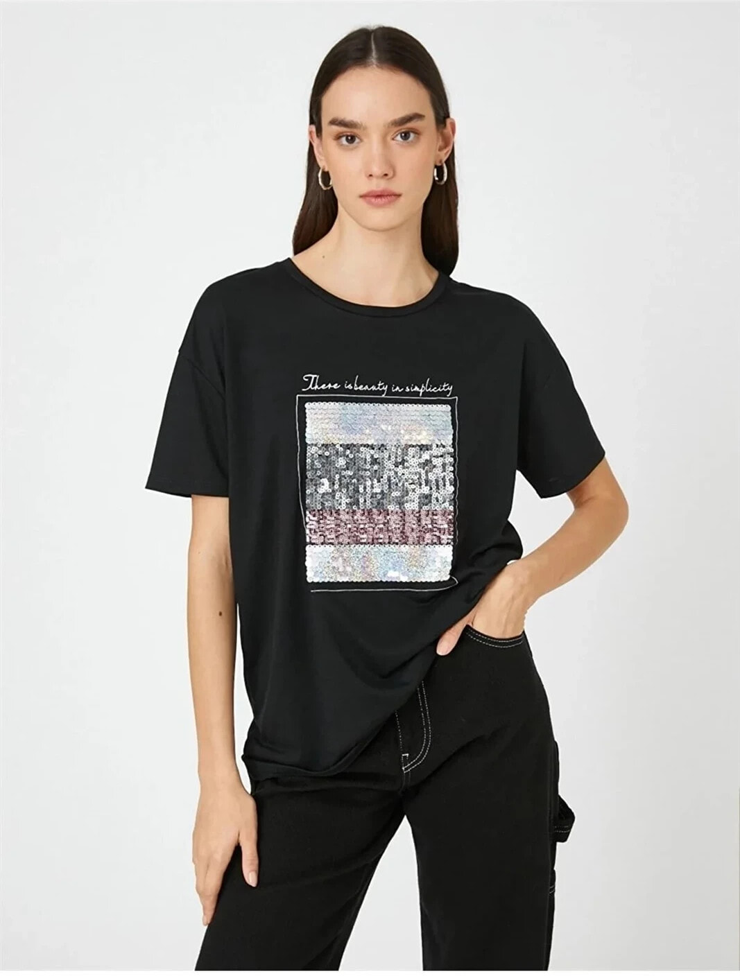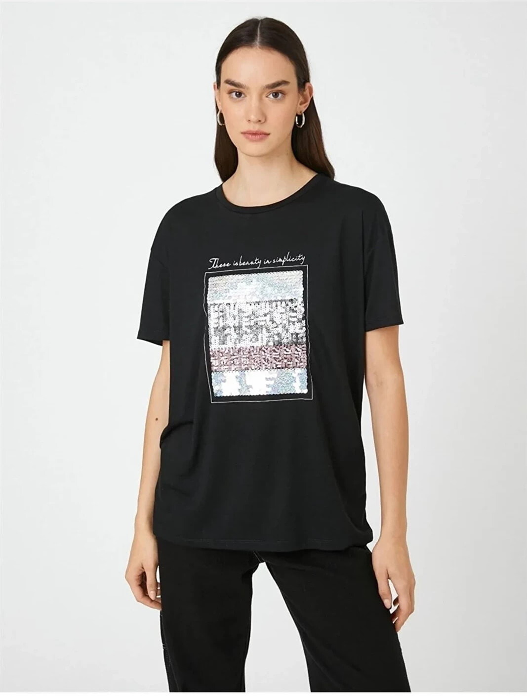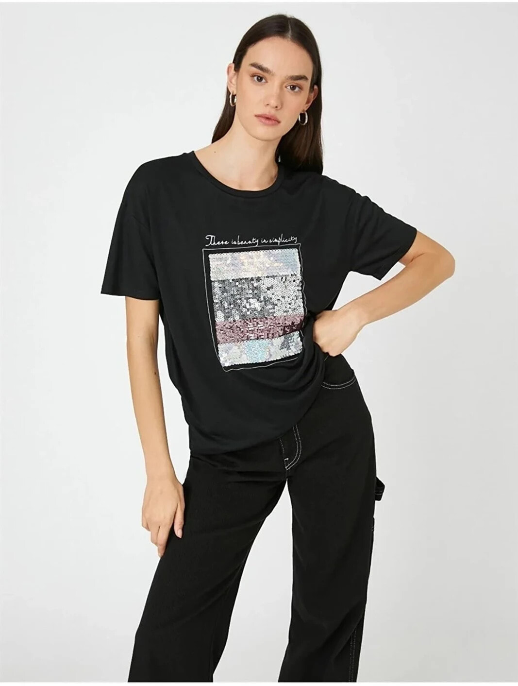 Koton 3Sak50032Ek 999 Siyah Kadın Viskoz Jersey T-Shirt