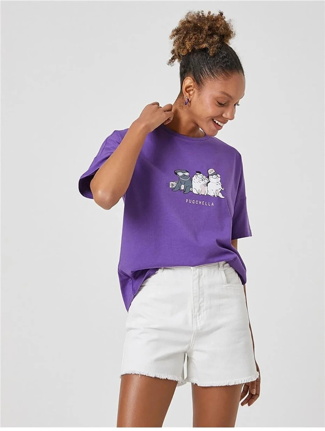 Koton 3Sal10112Ik Mor 348 Genç Kız Pamuk Jersey T-Shirt