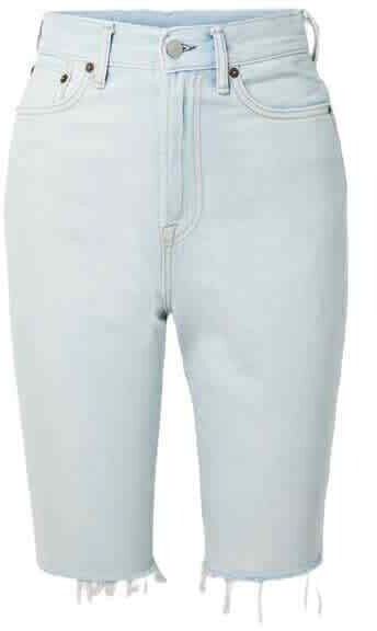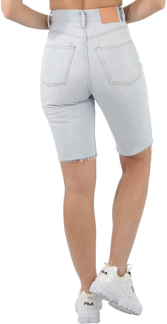 Acne Studios Ladies Bottoms. Fashion category: Shorts. SKU: AE0050. Color: Pale Blue. Acne Studios Ladies Pale Blue Denim Shorts. The Acne Studios denim shorts featuring a zip fly, button fastening, a frayed raw hem, five-pocket style. 100% cotton.