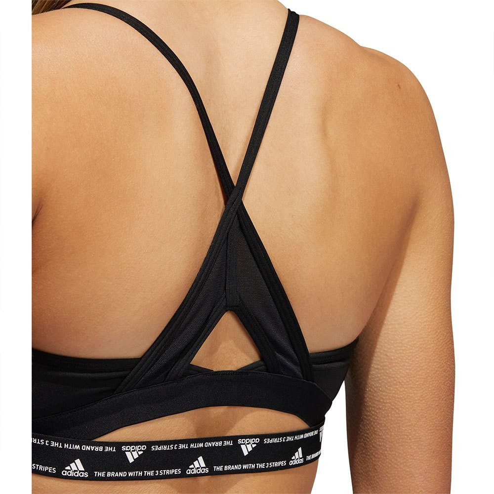 This adidas light- support bra keeps you feeling good with breathable mesh details and moisture- absorbing AEROREADY.