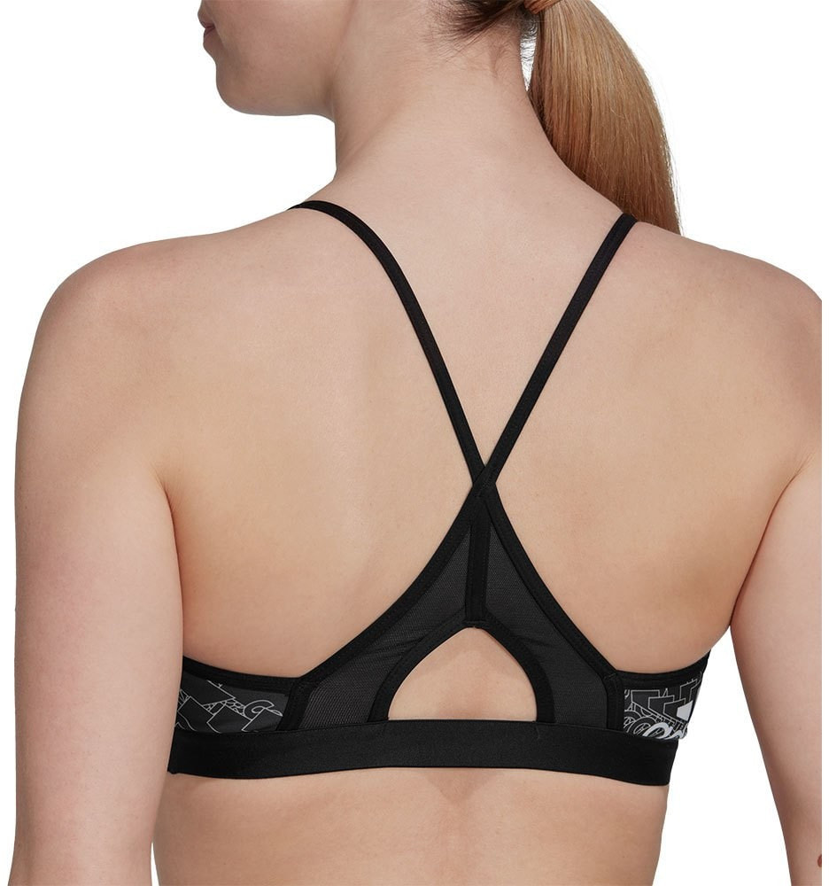 The back is what makes it stand out because it has thin, crossover straps, a keyhole cutout and airy mesh.
