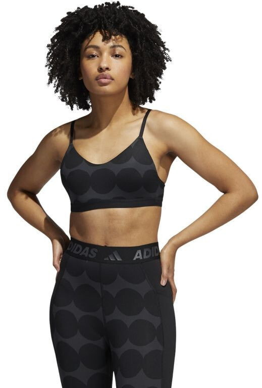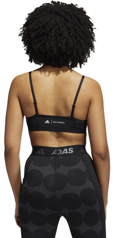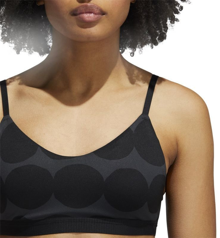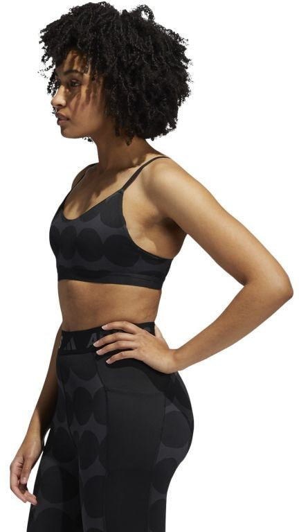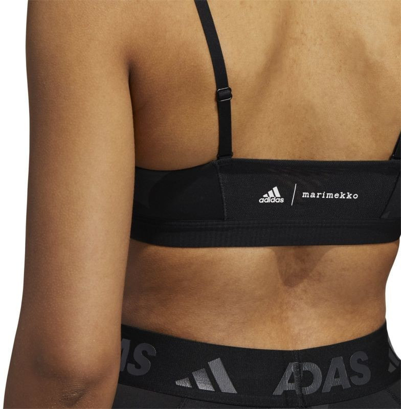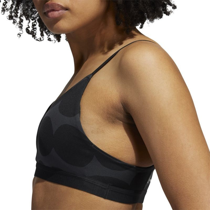 Marimekko was founded on the assumption that a woman should be able to run in a dress. This belief inspires adidas’ collaboration with a Finnish design company. This slightly supportive sports bra has a slim fit that allows you to move freely during yoga or barre classes. AEROREADY absorbs moisture.