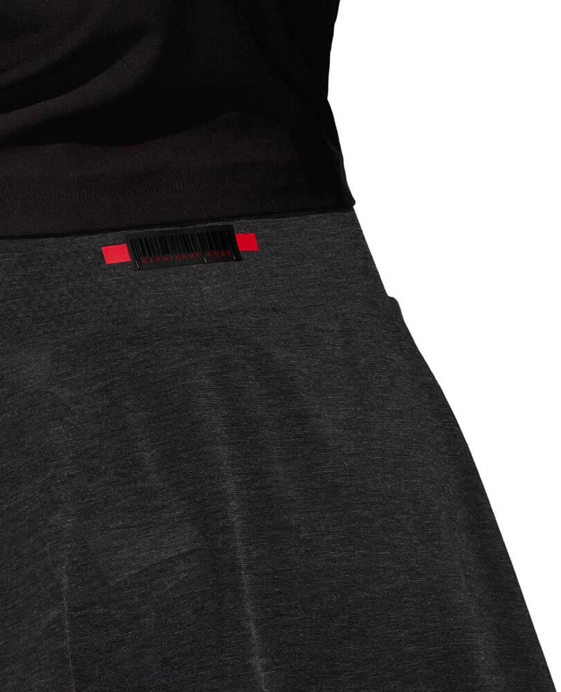 -Wide bonded waistband with contrast color tipping.