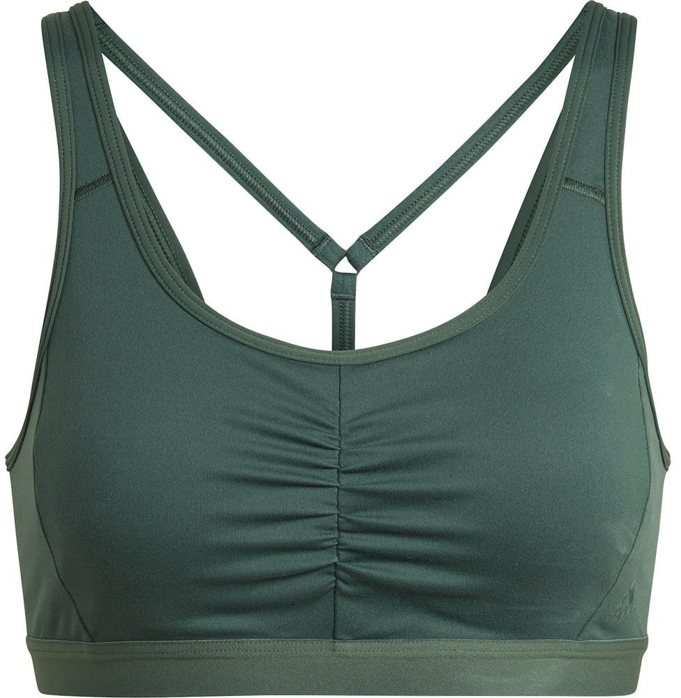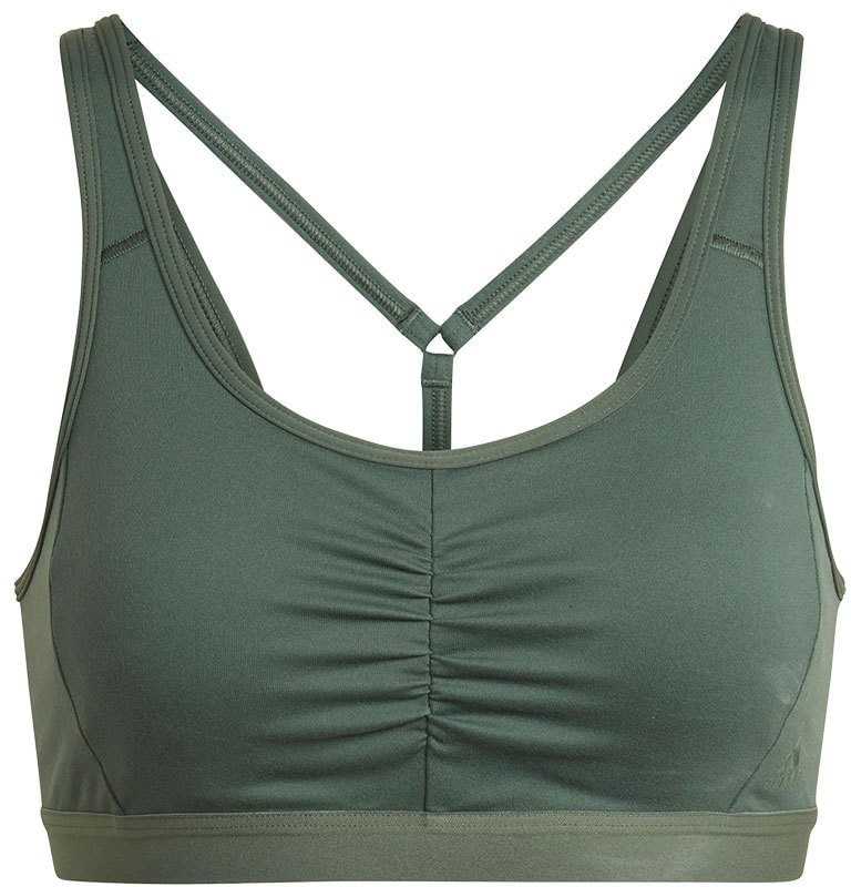 A T-back and ruching details down the front give this sports bra a sweet edge — perfect to show off underneath a loose, open tank.