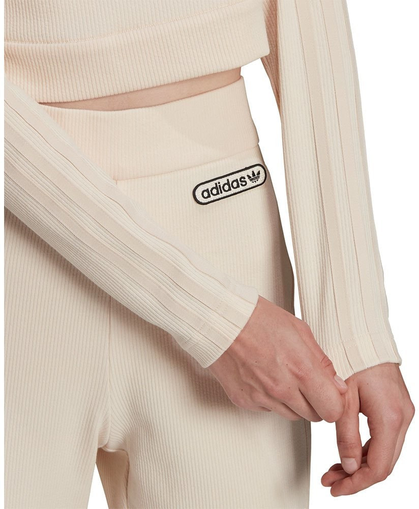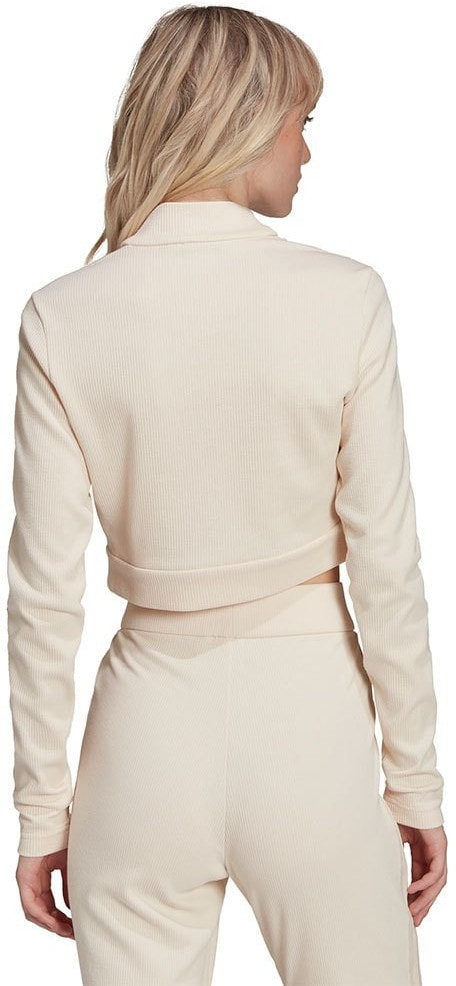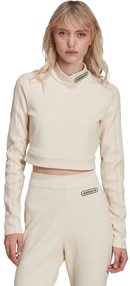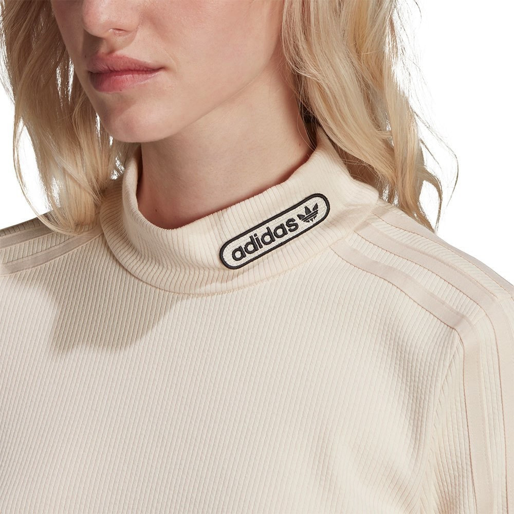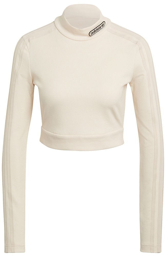 Find the balance in this adidas tee. The long sleeves and mock neck give the look and feeling of extra coverage, but the cropped length exposes a bit of skin. Stretchy, ribbed materials nod to the top´s ´70s inspiration. Tonal 3-Stripes bring in a flash of sport.