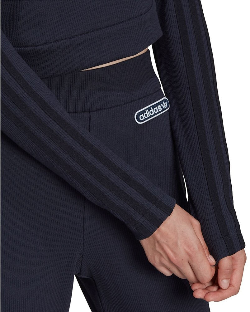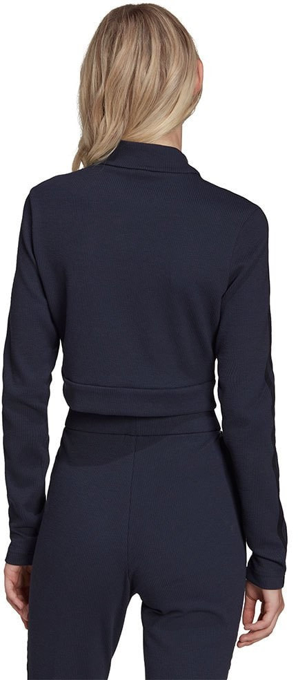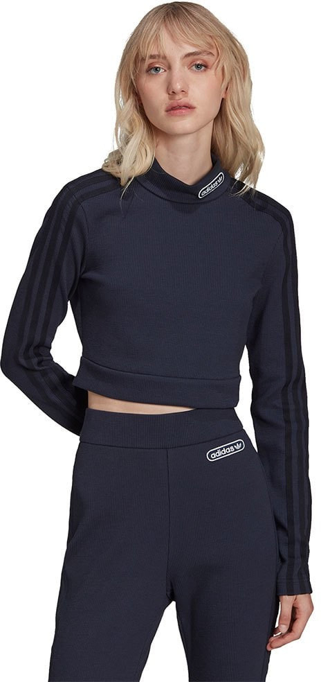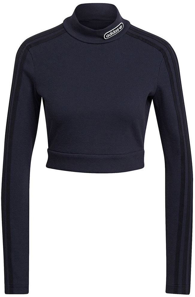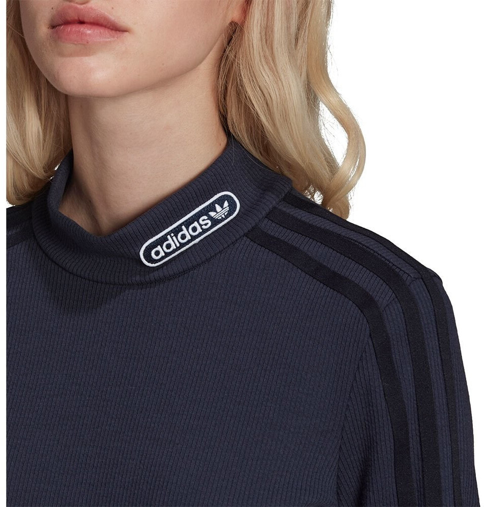 Find the balance in this adidas tee. The long sleeves and mock neck give the look and feeling of extra coverage, but the cropped length exposes a bit of skin. Stretchy, ribbed materials nod to the top´s ´70s inspiration. Tonal 3-Stripes bring in a flash of sport.