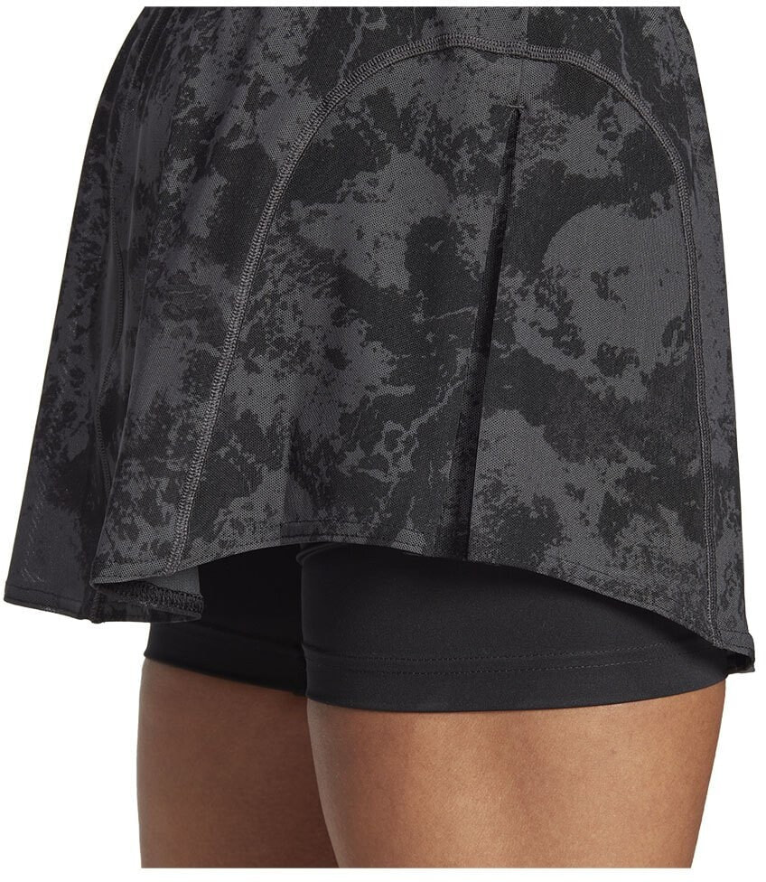 Part of an adidas collection modelled for the slow courts of Paris, this tennis skirt shows off clay surface-inspired graphics designed to blend into their environment and disguise your movements.