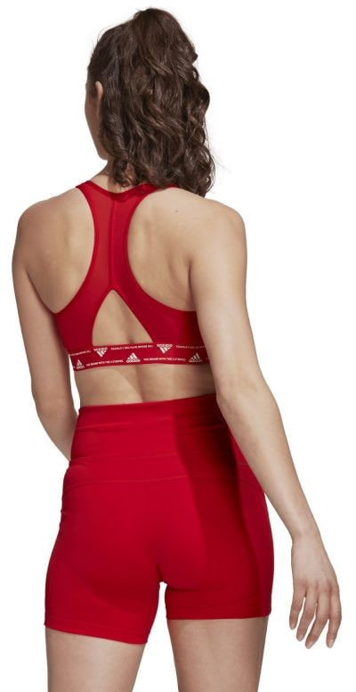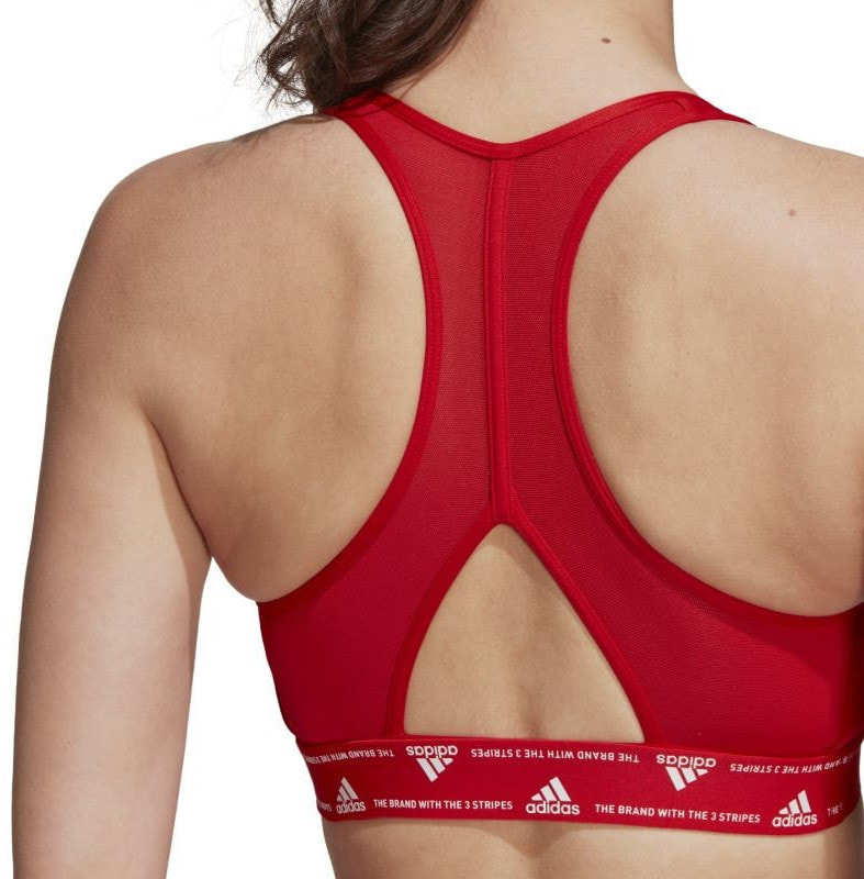 The first drop of sweat to run down your neckline doesn’t have to bother you at all. Take it as a piece of hard work and let this adidas sports bra do the rest. The breathable material is smooth and airy. Moisture-wicking AEROREADY keeps you dry.