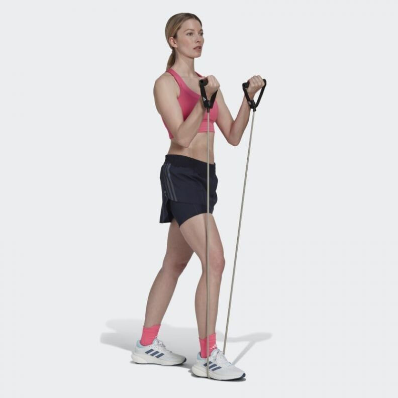 Hidden pockets hold your essentials, and this adidas medium support bra keeps you covered for your runs and hikes. Overcome the next kilometers in comfort thanks to the design that adapts to the shape of your figure. Stay dry with AEROREADY moisture-wicking