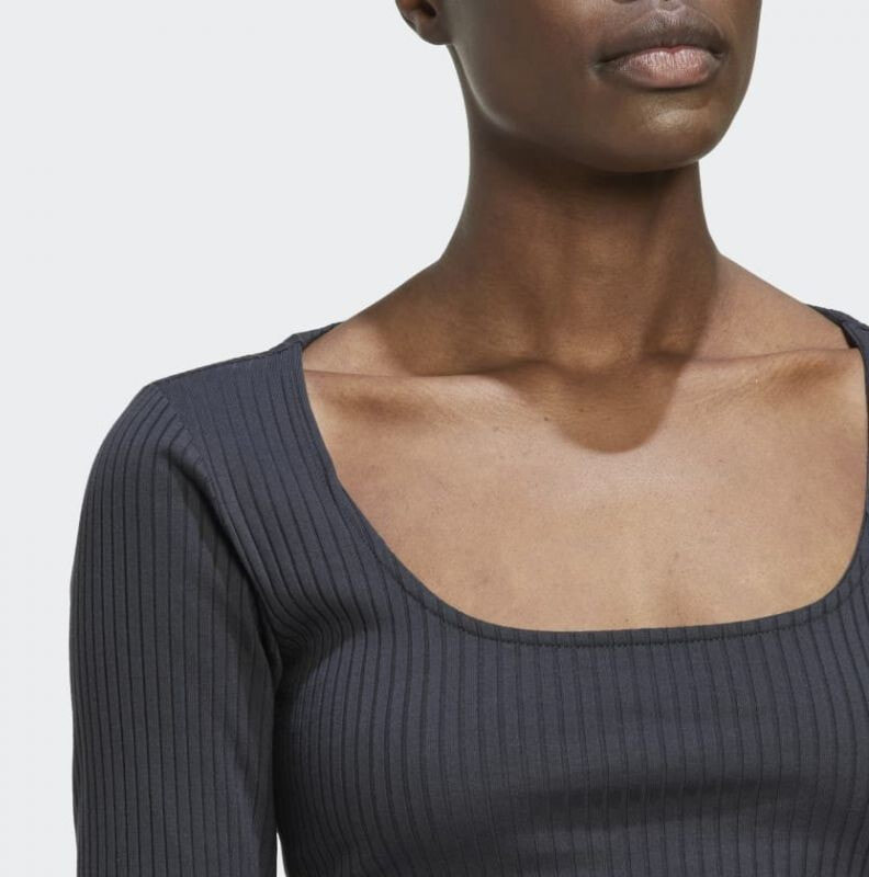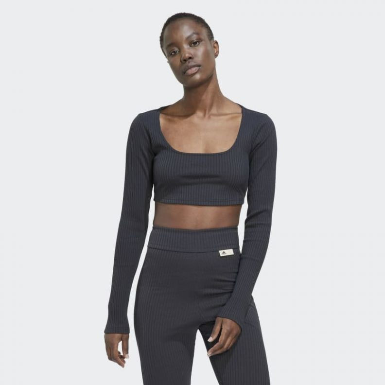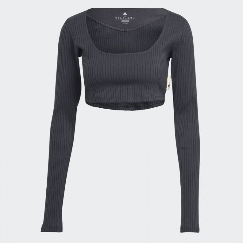 Adidas Studio Lounge Ribbed Cropped Long Sleeve Tee W HH8502