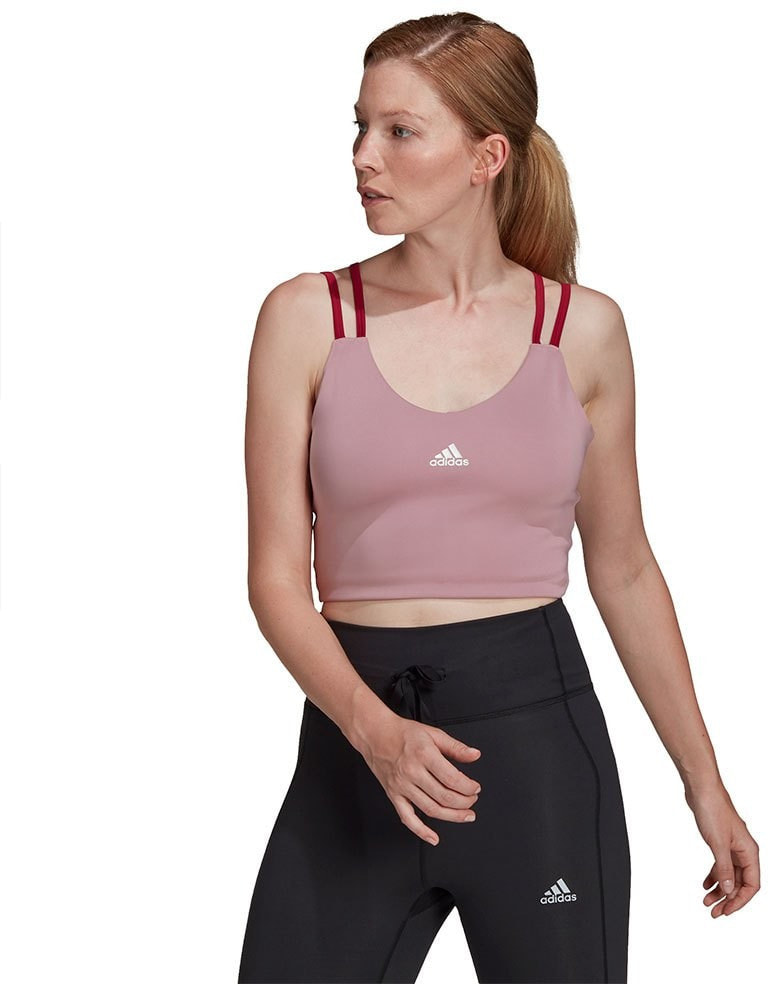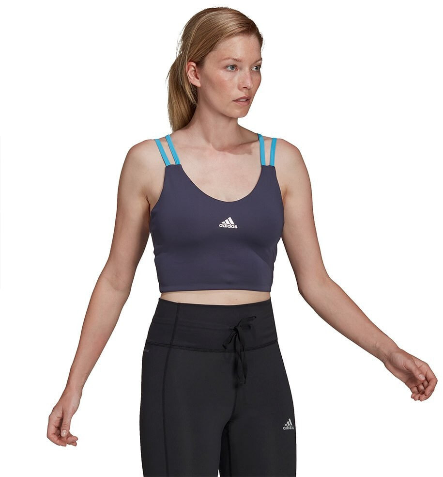 Layered under a tank or worn alone, this adidas bra top has modern, sporty appeal that upgrades any outfit.