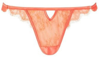 Appeal to your fun and flirty side with The Blossoming Thong in orange. Adorned with delicate bows and pleated trims, this thong features satin binding, dainty eyelash lace along the edges for a feminine finish, and minimal coverage at the back.