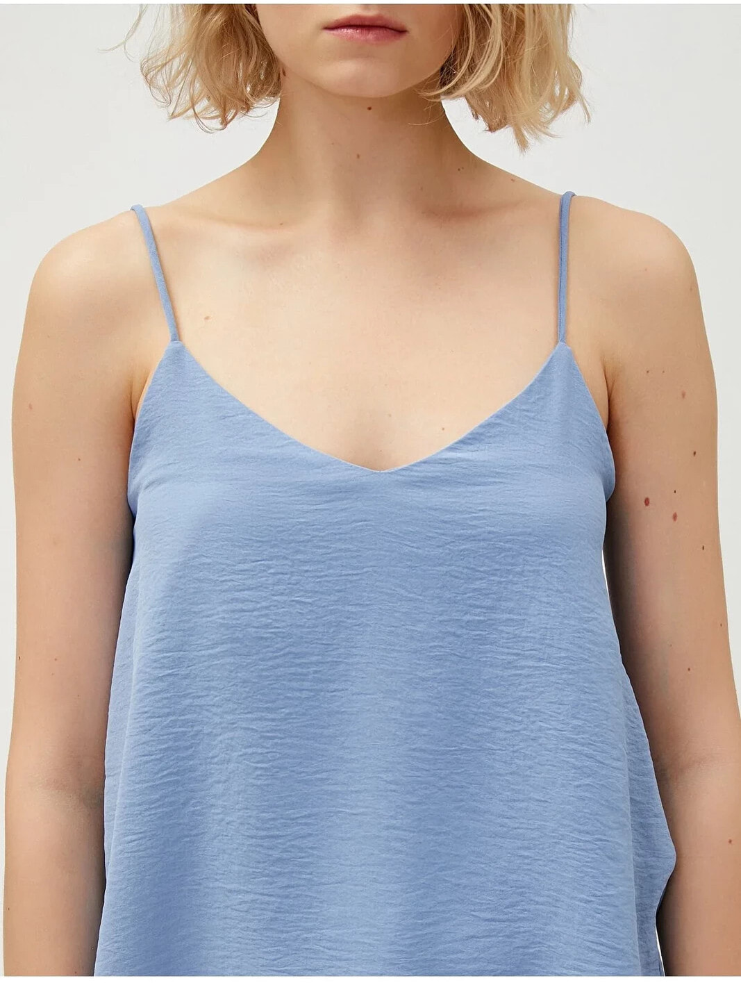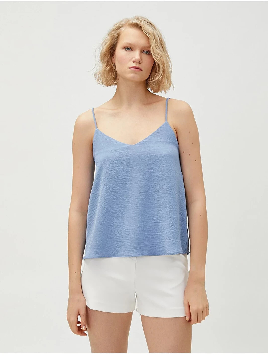 Günlük giyimde de şıklığınızla beğenileri toplayın! İnce askılı, V yaka bluzu ister kot pantolonlarla isterseniz katlı eteklerle kombinleyin!