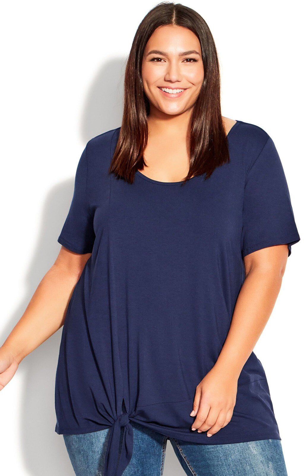 Refresh your 9 to 5 look with the wildside top! featuring a scoop neckline, soft stretch knit fabrication, and a tie front hemline, this style will elevate your off-duty look. Key features include: – Scoop neckline. Short sleeves. Pull-over fit. Darts at bust for shape. Seam detailing on bodice. Soft stretch knit fabrication. Hi-lo tie front hemline. Go for a relaxed athleisure look with joggers and sneakers.