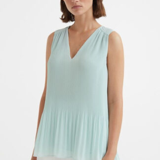 Easily elegant, get some go-to glamour in the Erica Pleat Hem Top. A chic semi-sheer design layers over an included camisole for a dynamic design, finished with bold pleat hem detailing. Key Features Include: Round neckline, 3/4 length wide sleeves, pull-over fit, semi-sheer fabrication, relaxed silhouette, includes lining cami. Hip length pleated hemline.
