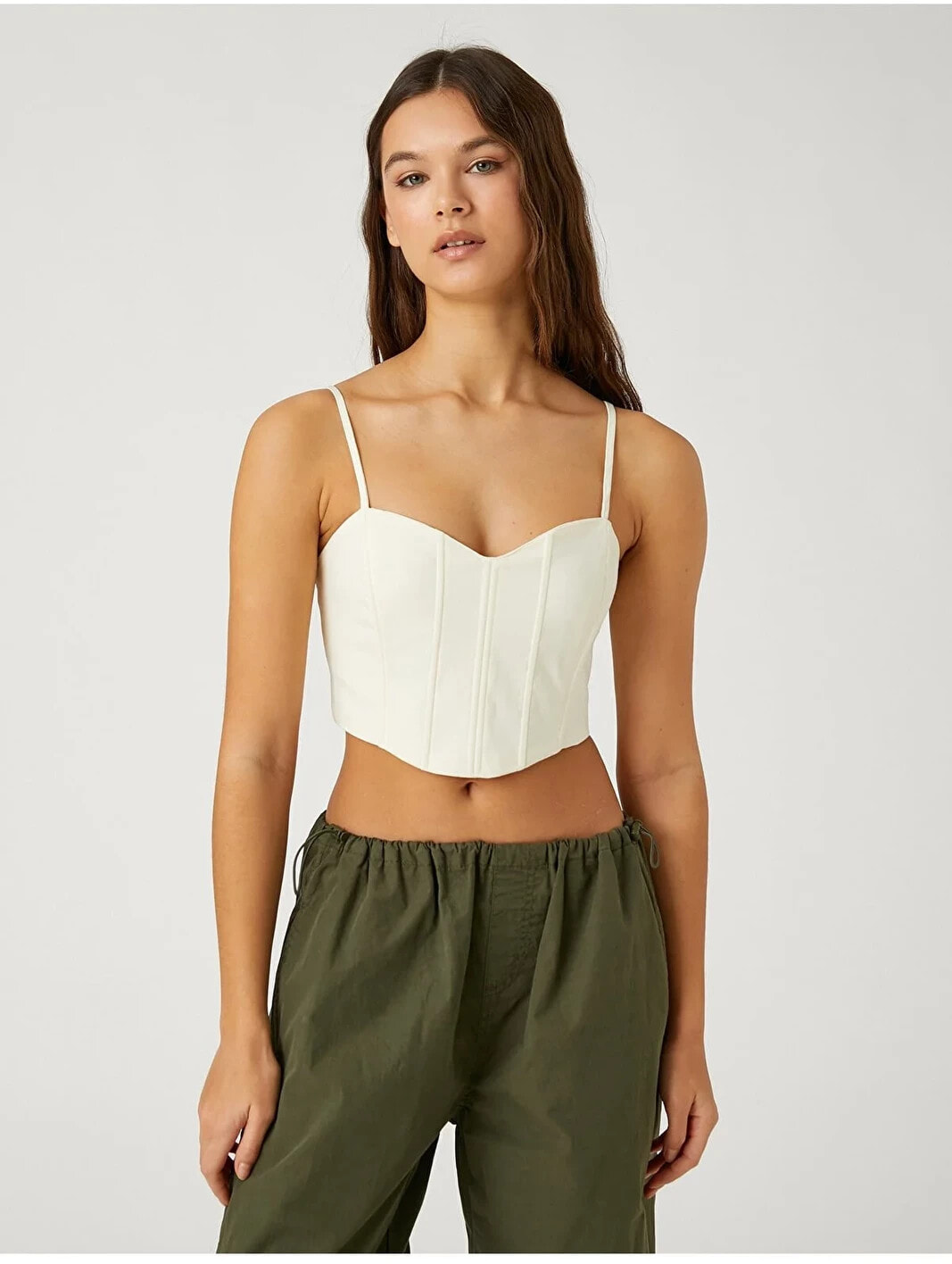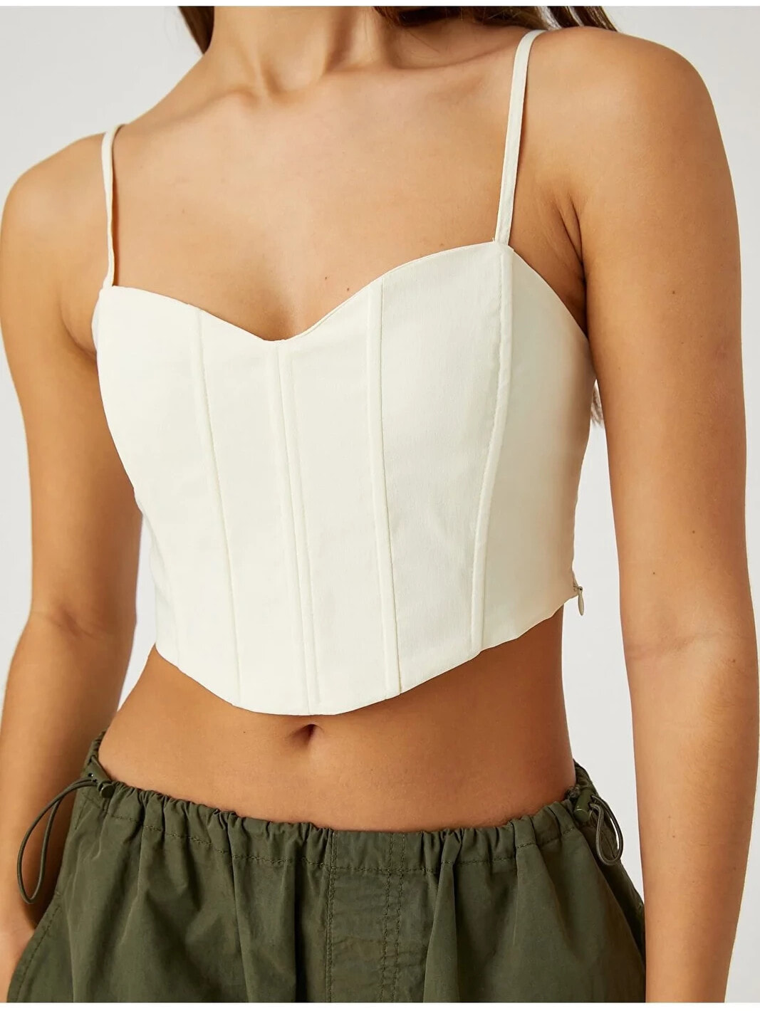 Respect Life – Yaşama Saygı | Asimetrik kesim, ince askılı, crop, balenli büstiyer. |Bu ürün geri dönüştürülmüş polyamid iplik içerir. Koton’un insana ve topluma değer katma, gelecek nesillere daha yaşanılabilir bir dünya bırakma duyarlılığıyla hazırladığı koleksiyonu keşfedin.