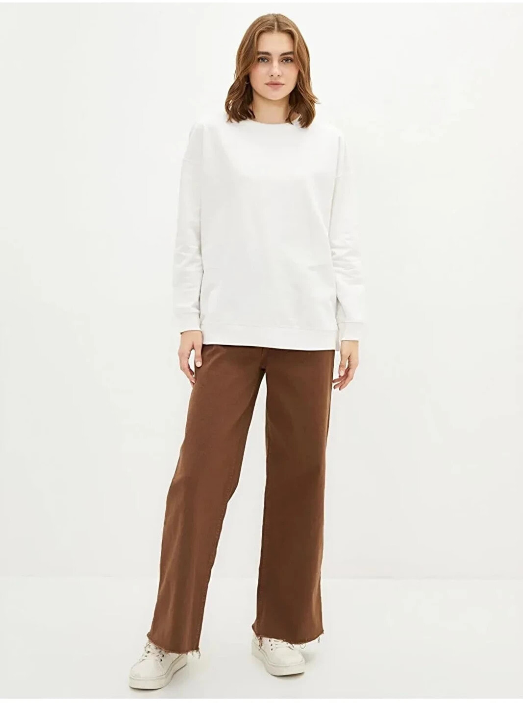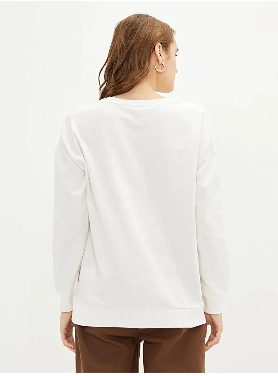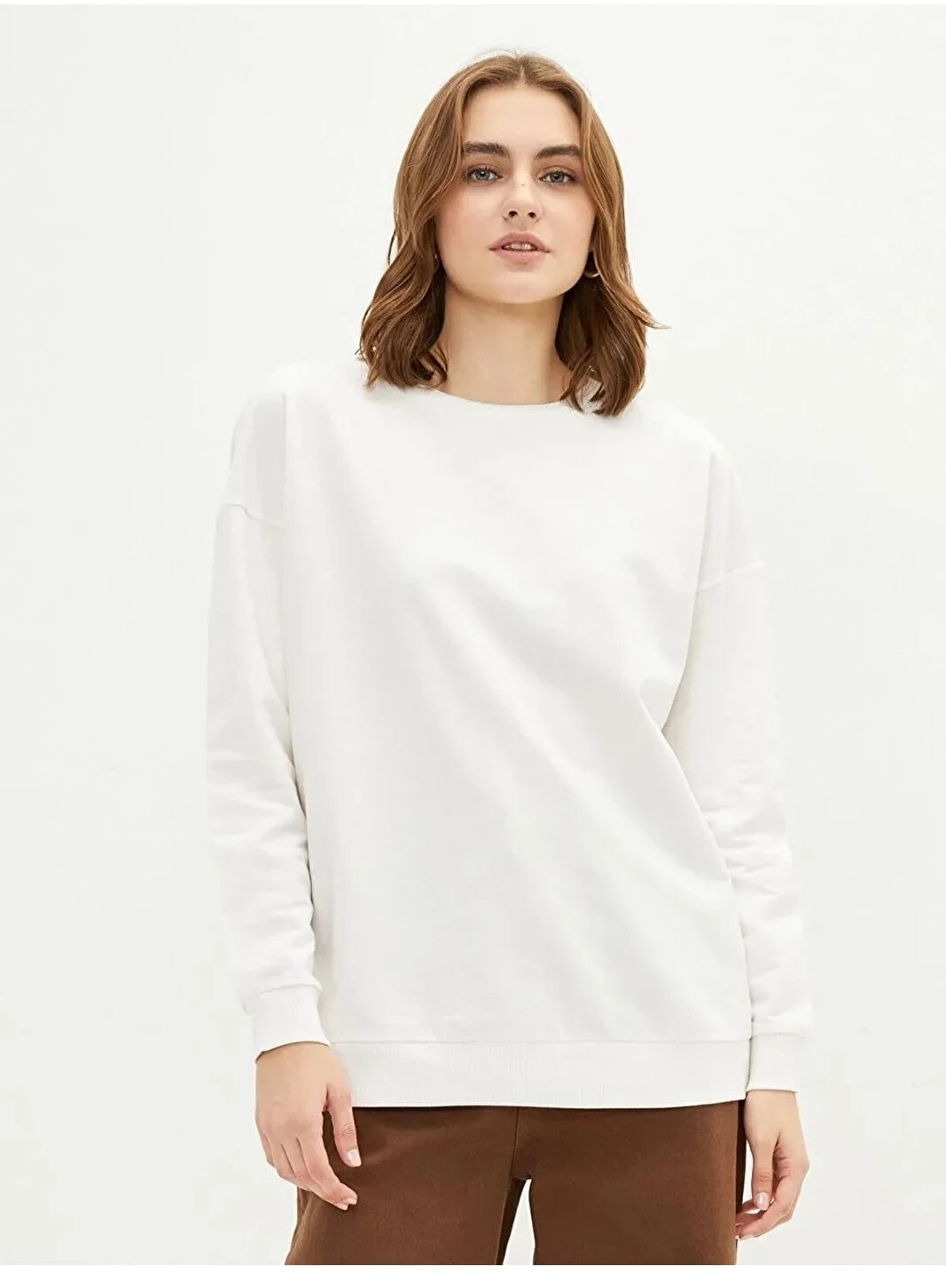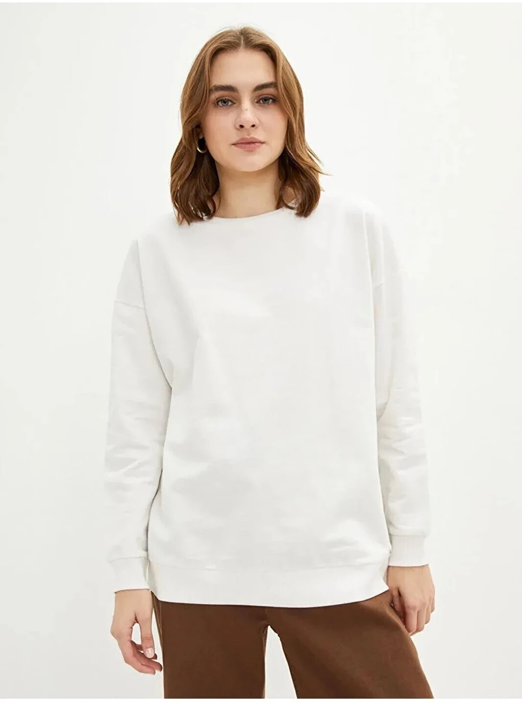 Basic Bisiklet Yaka Düz Uzun Kollu Kadın Sweatshirt