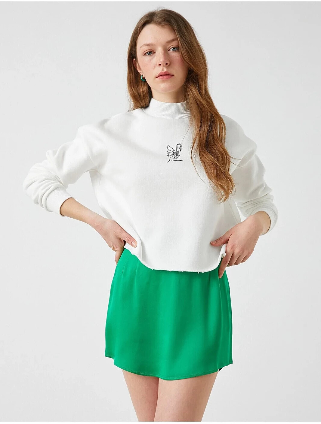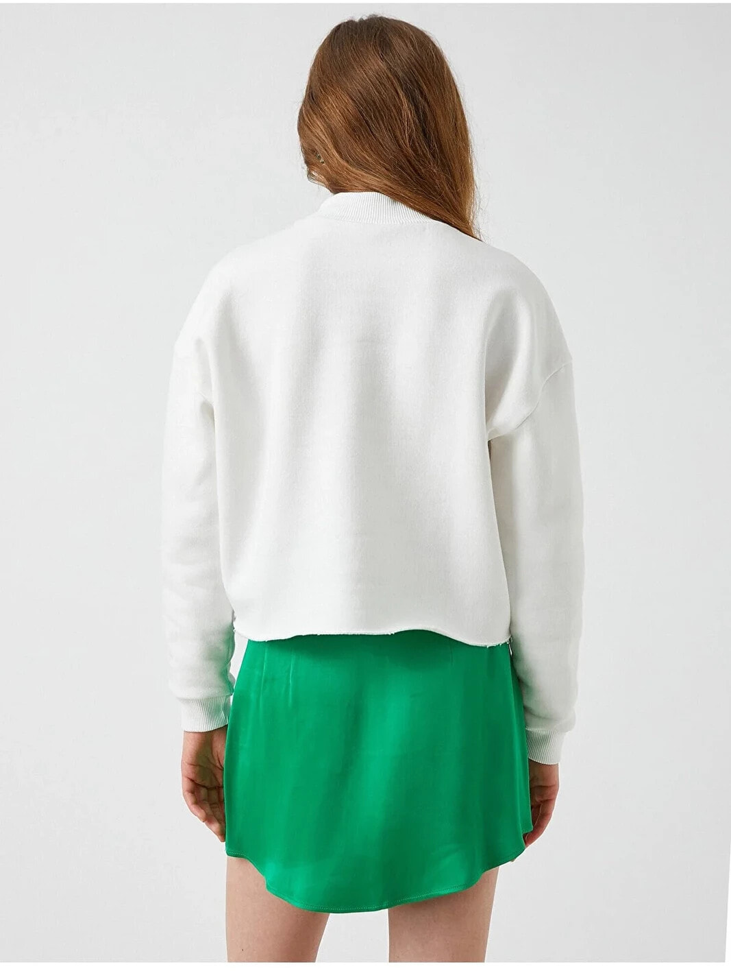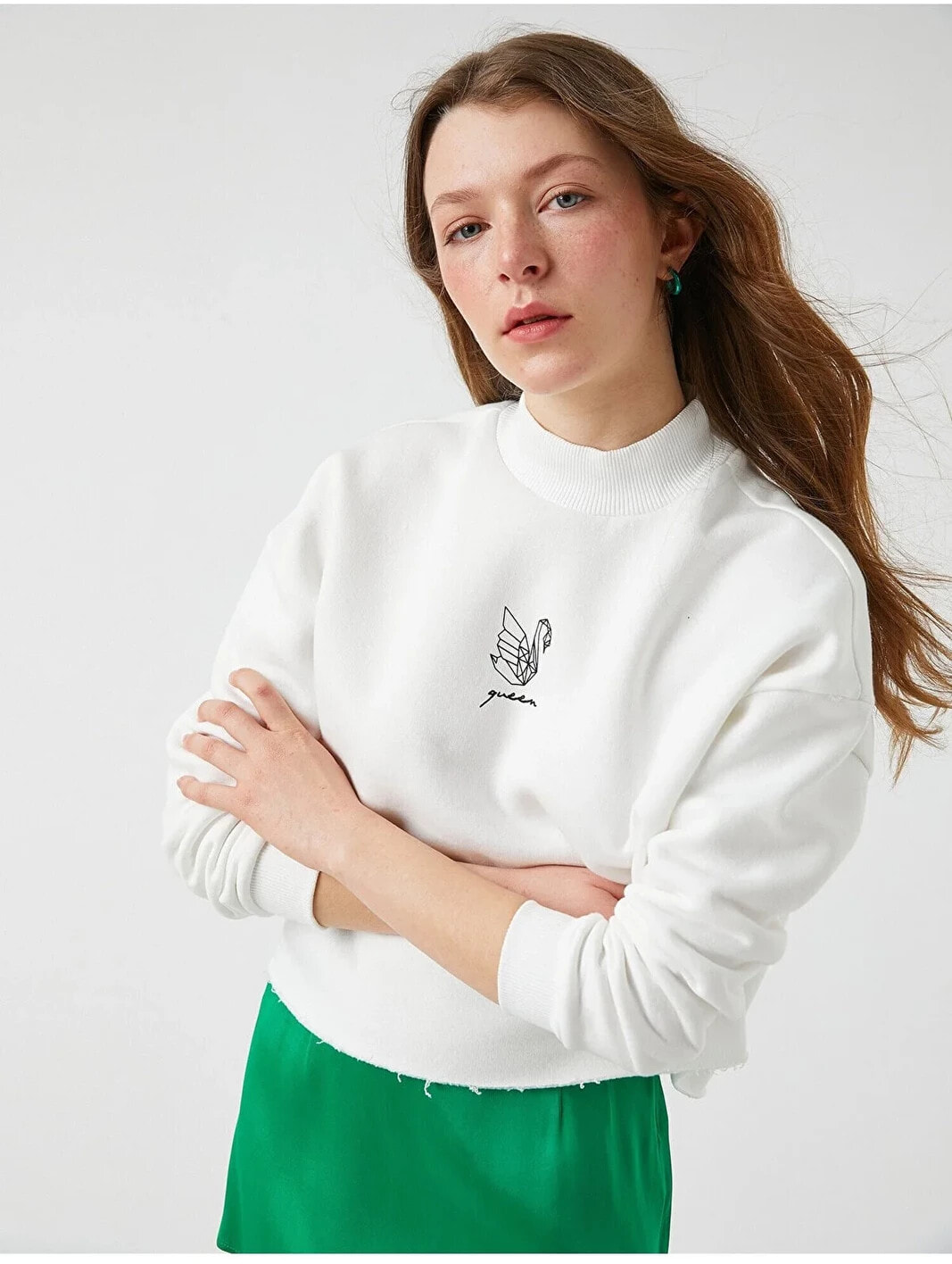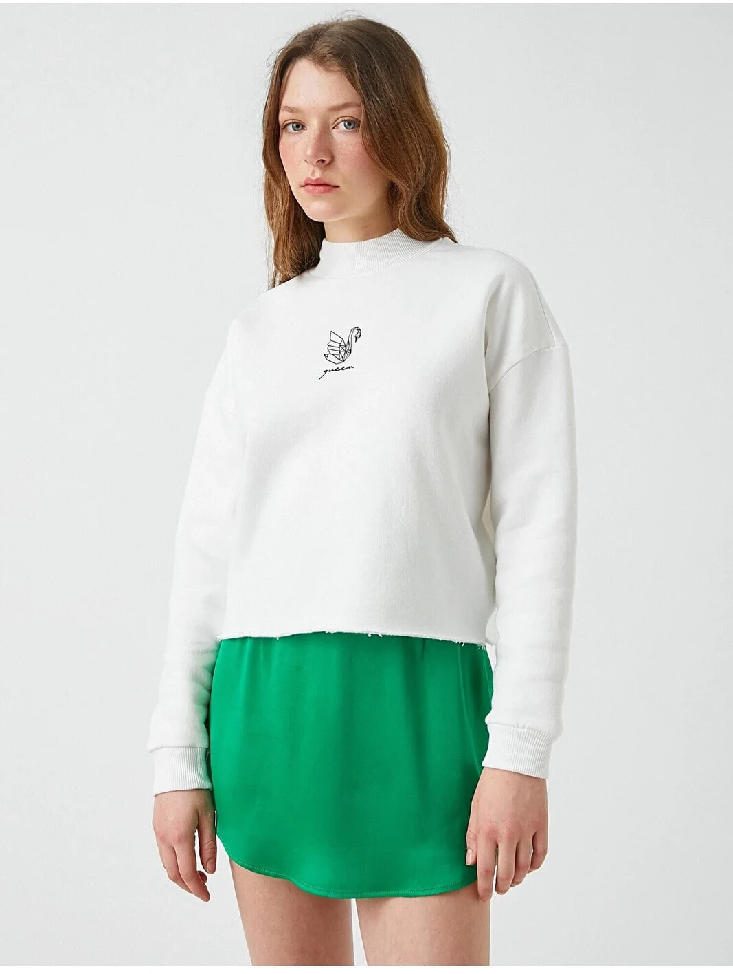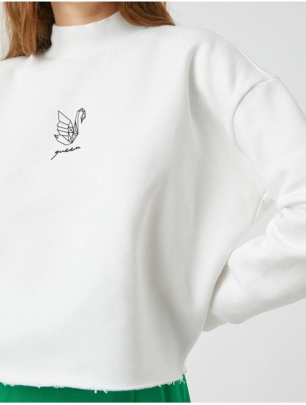 Baskılı Dik Yaka Sweatshirt Model Bilgileri: Boy:175 cm, Göğüs:81, Bel:62, Kalça:90, Modelin Bedeni:S