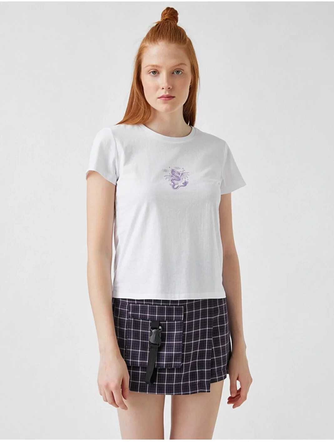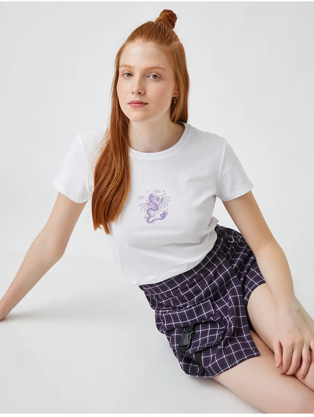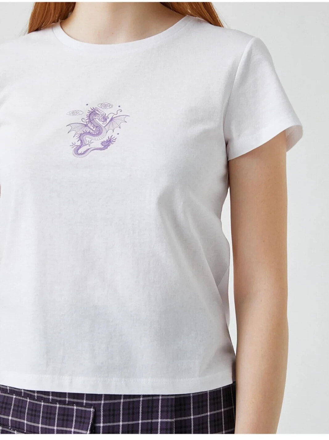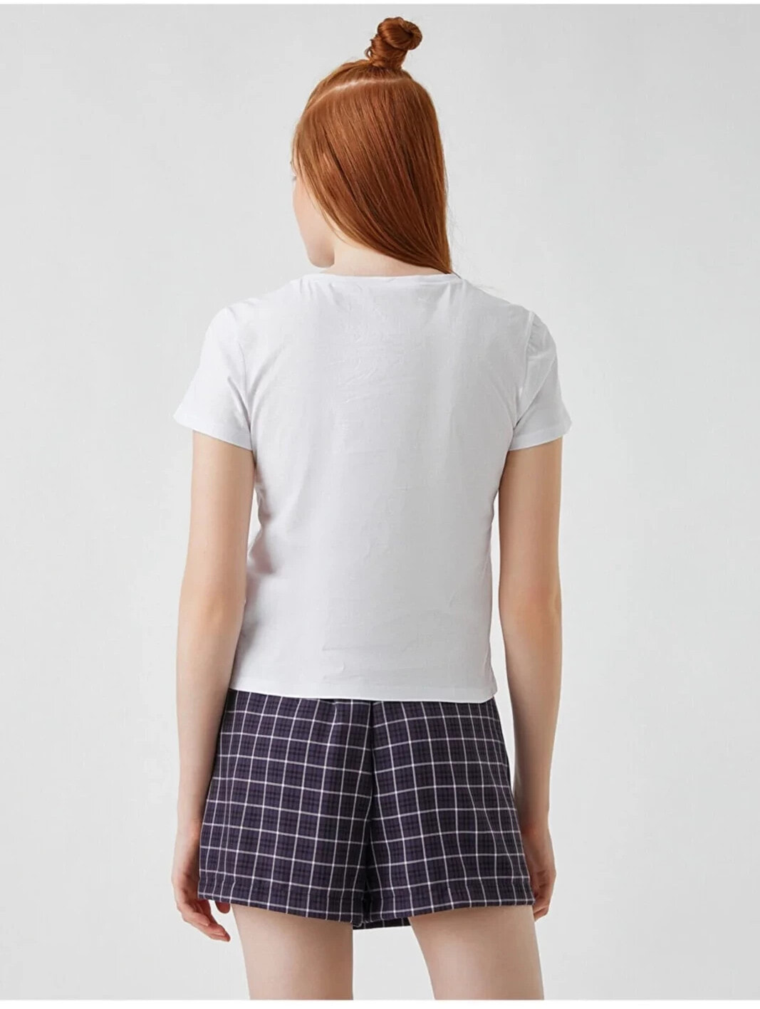 Baskılı Kısa Kollu Pamuklu Tişört Model Bilgileri: Boy:175 cm, Göğüs:83, Bel:63, Kalça:85, Modelin Bedeni:S