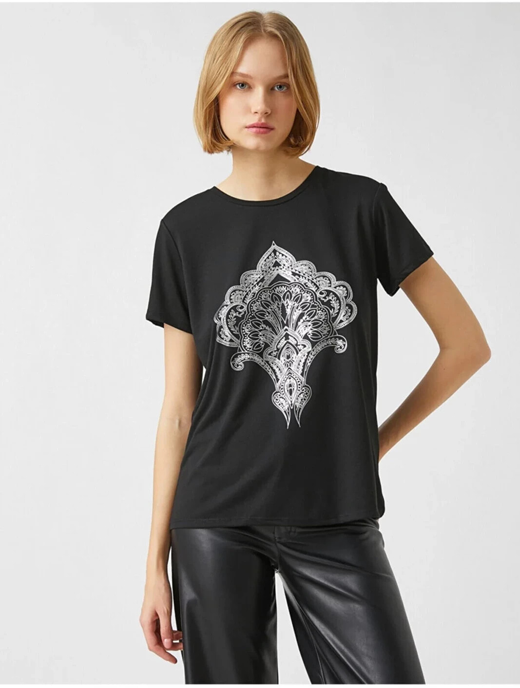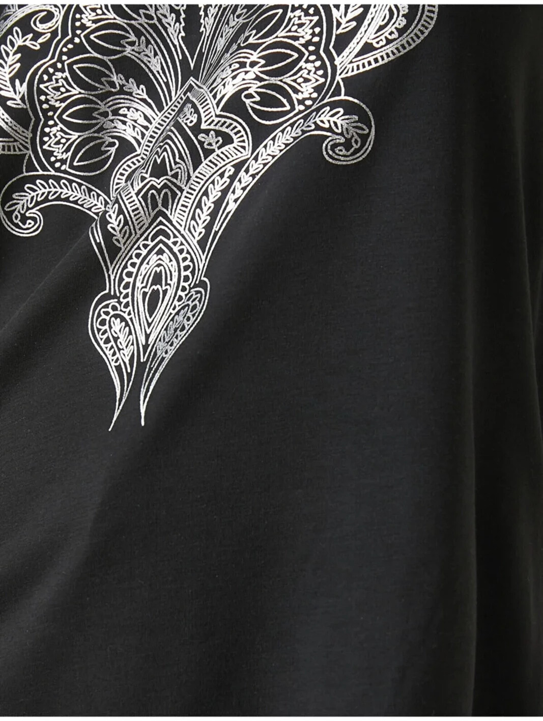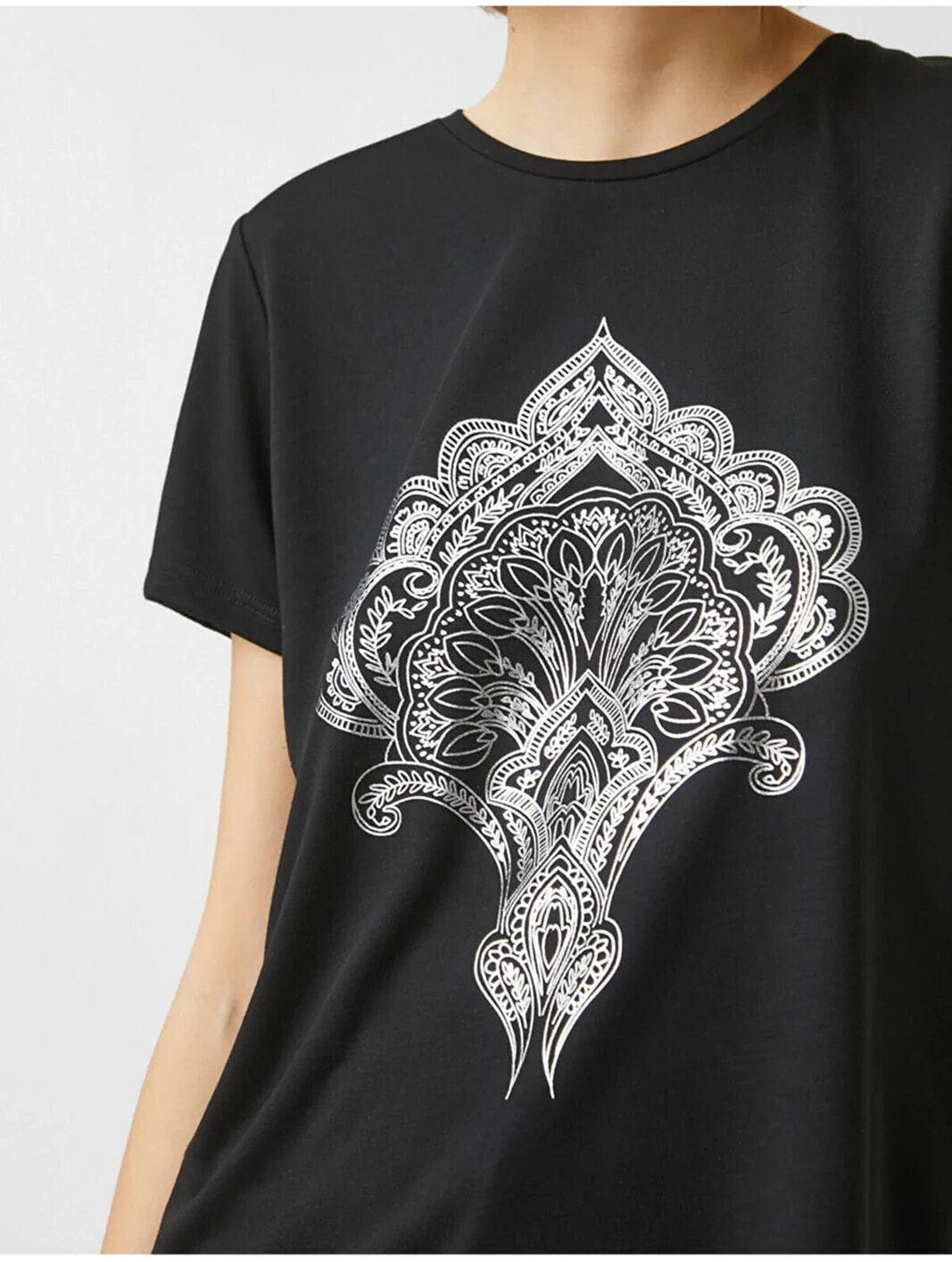 Baskılı, Kısa Kollu Tişört Model Bilgileri: Boy:181 cm, Göğüs:84, Bel:61, Kalça:90, Modelin Bedeni:S