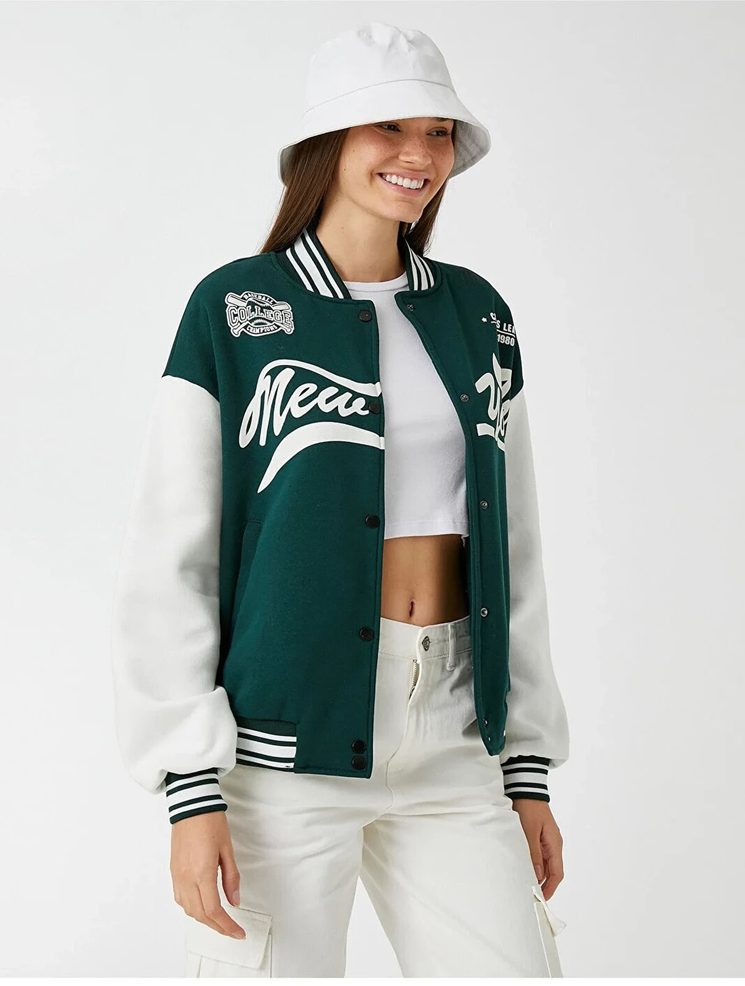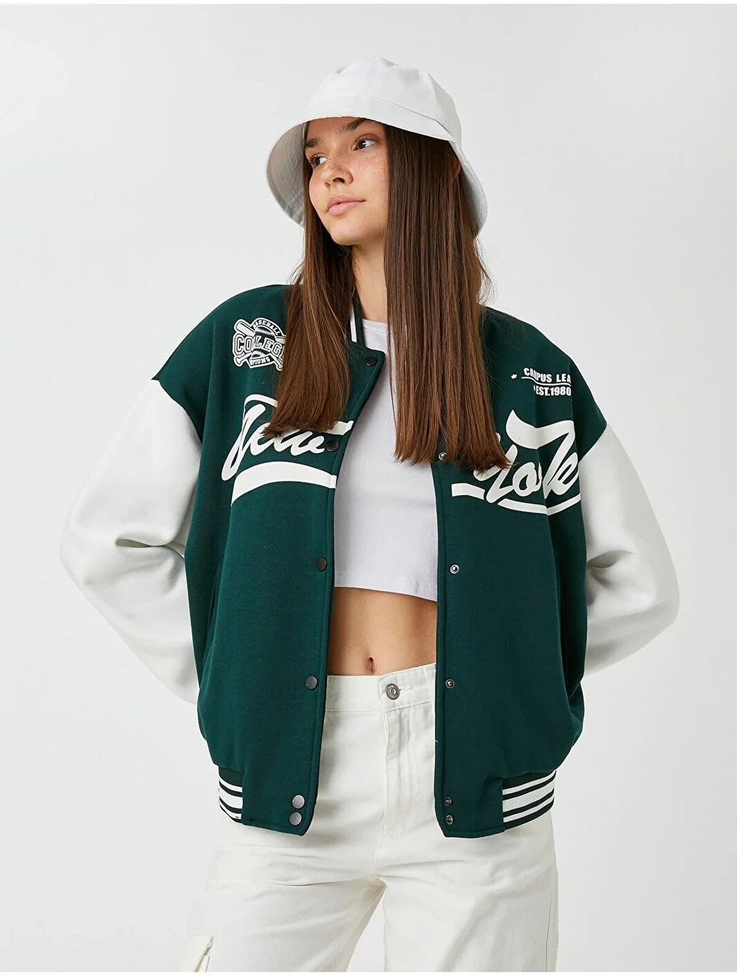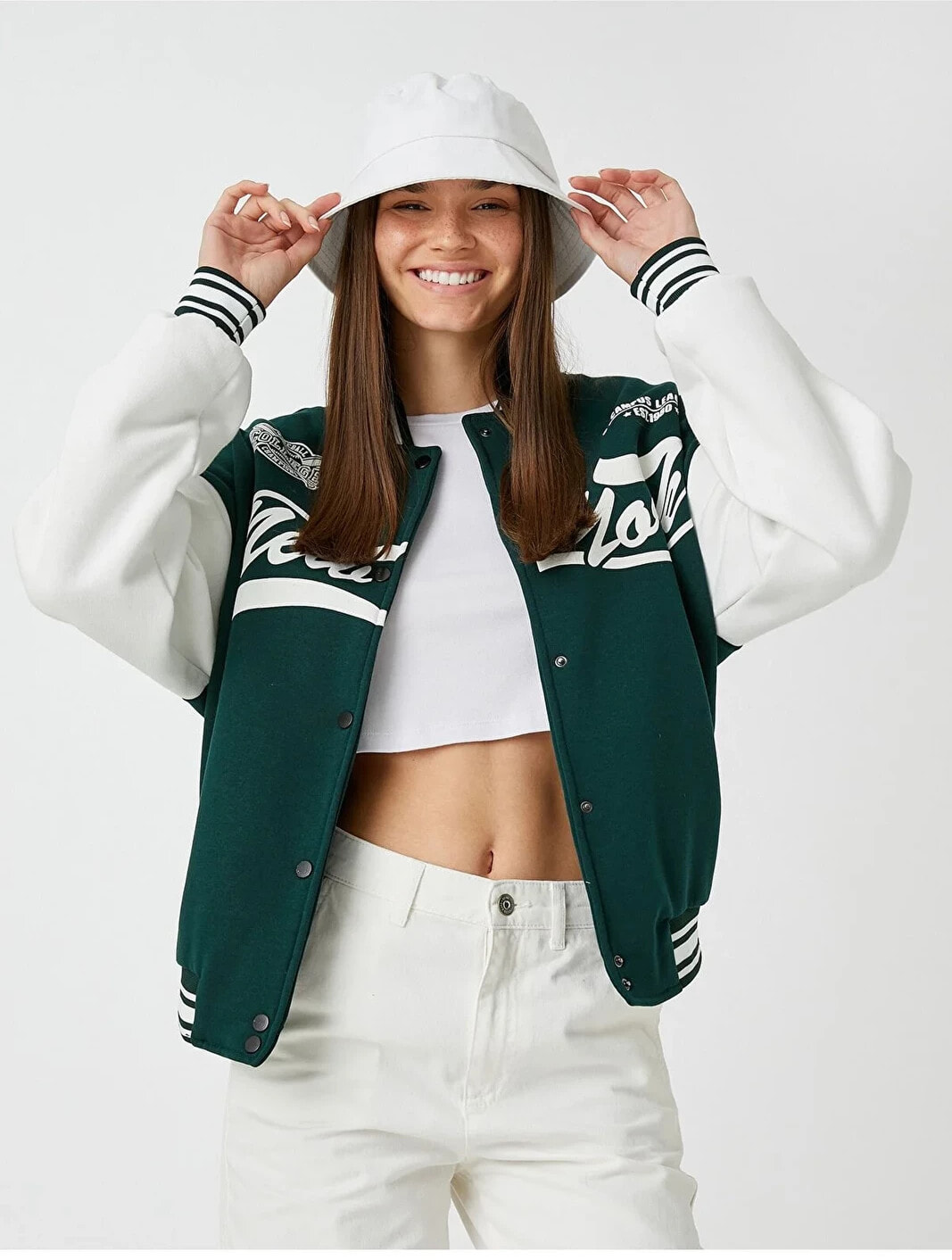 Baskılı, ribanalı, çıtçıt kapama kolej ceket.