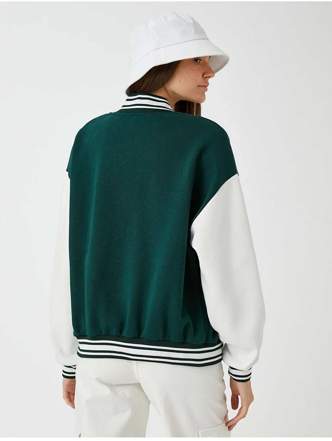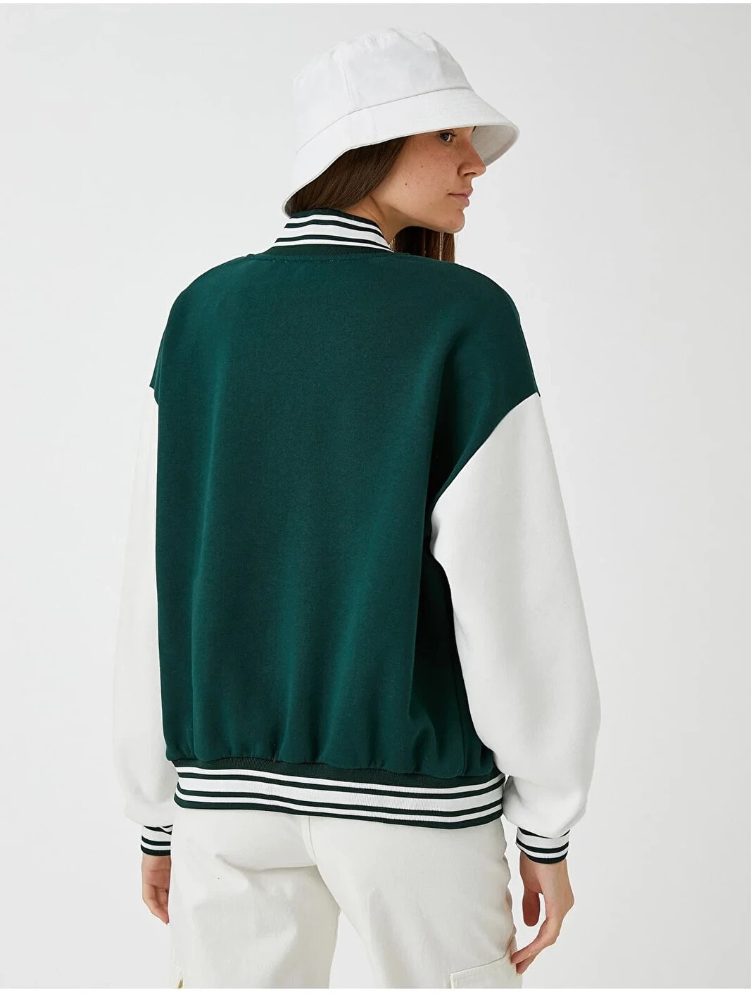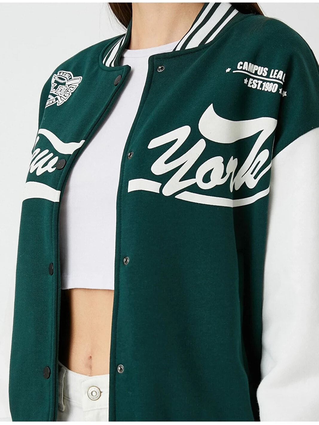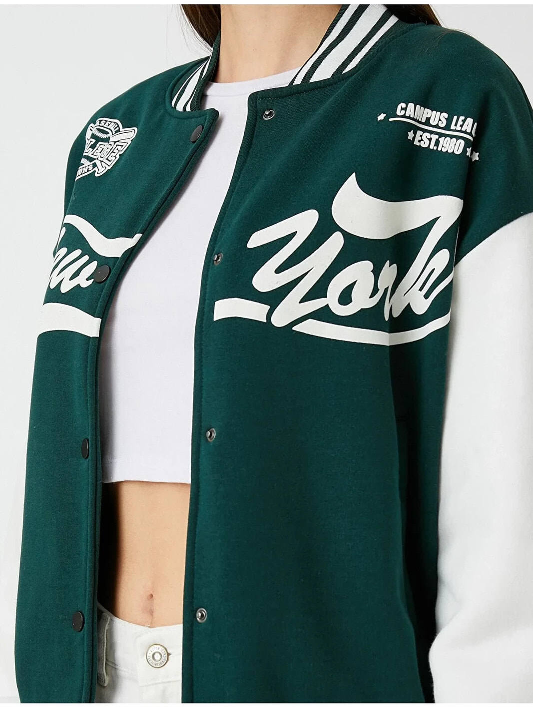 Baskılı, ribanalı, çıtçıt kapama kolej ceket.