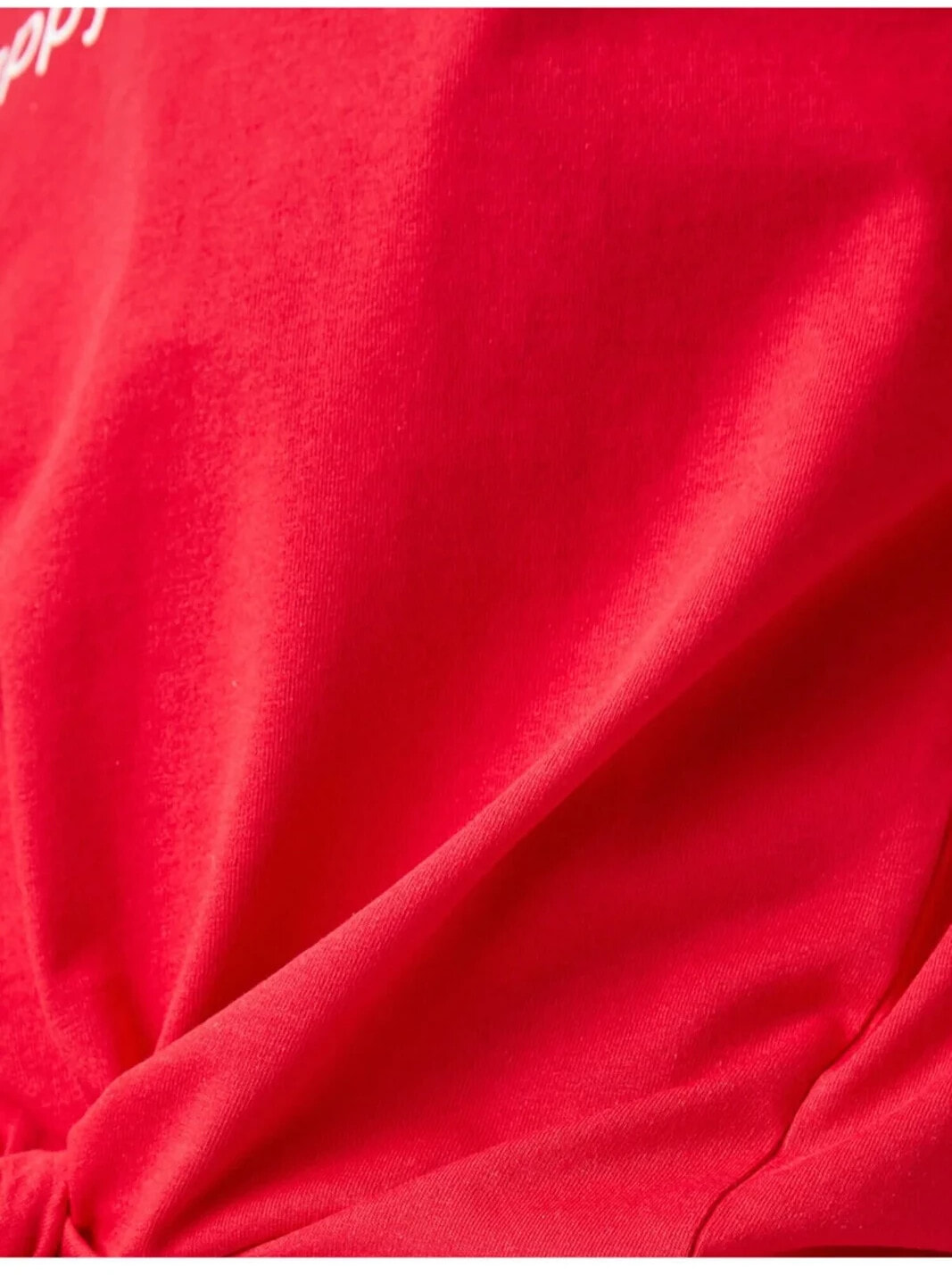 Beli Bağcıklı, Kısa Kollu Tişört Model Bilgileri: Boy:176 cm, Göğüs:75, Bel:60, Kalça:88, Modelin Bedeni:S