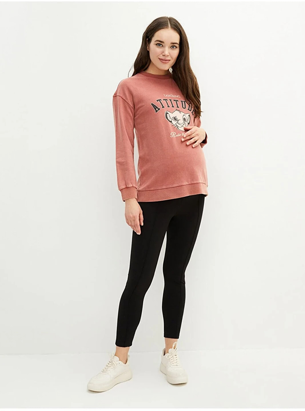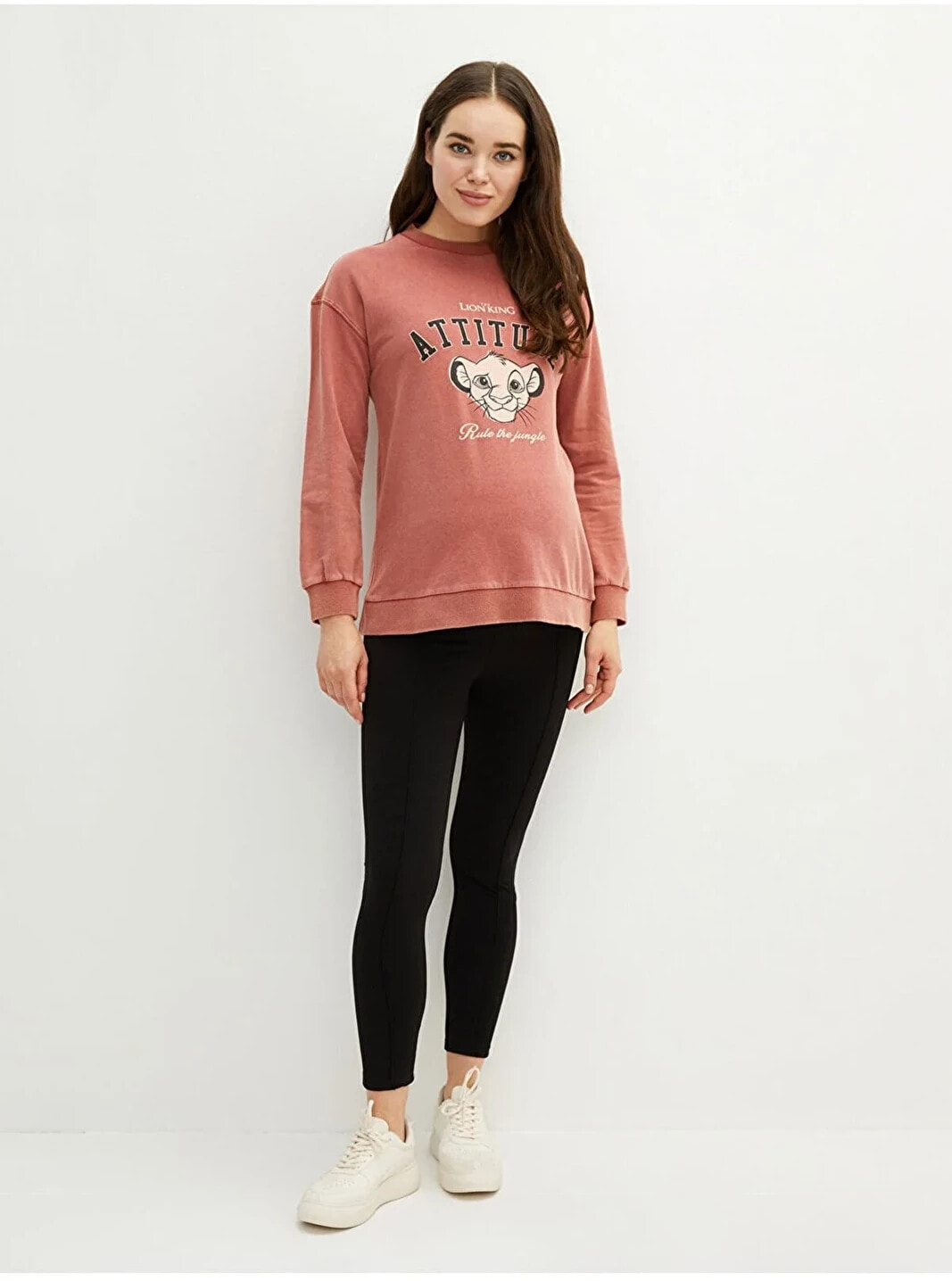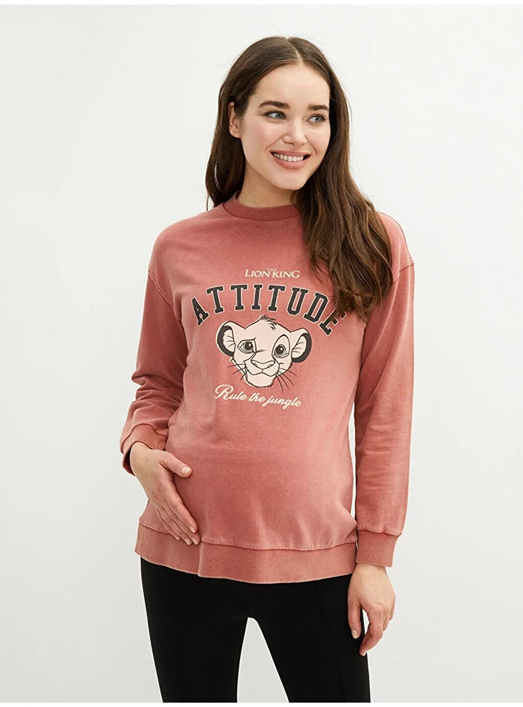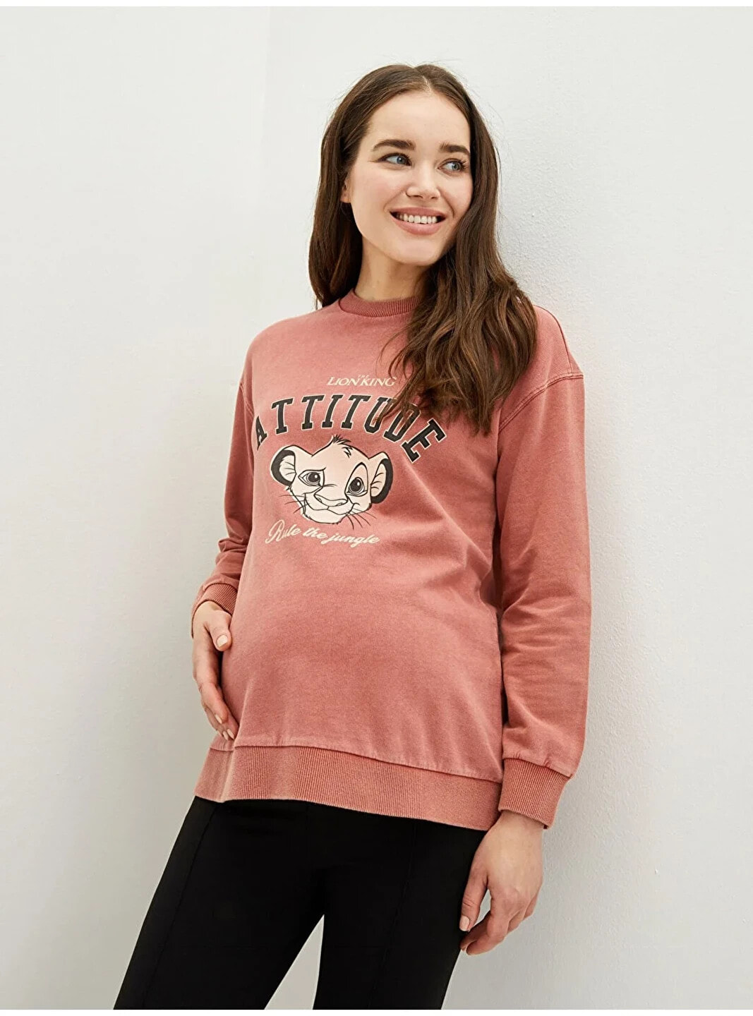 Bisiklet Yaka Aslan Kral Baskılı Uzun Kollu Hamile Sweatshirt