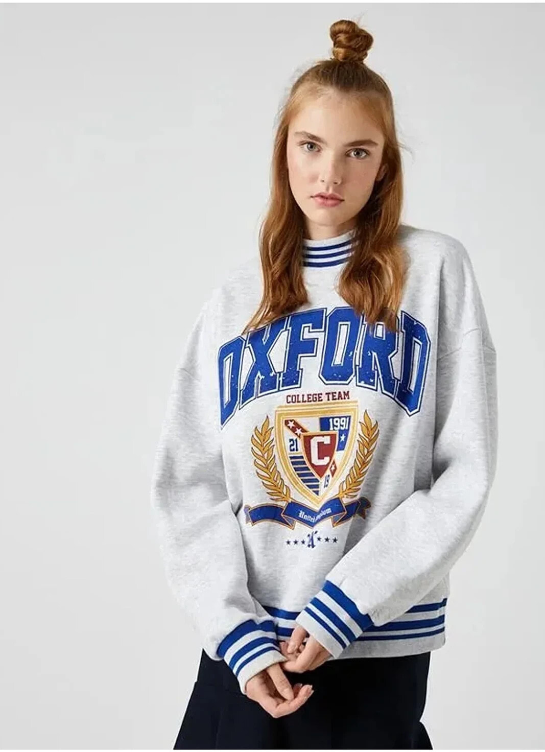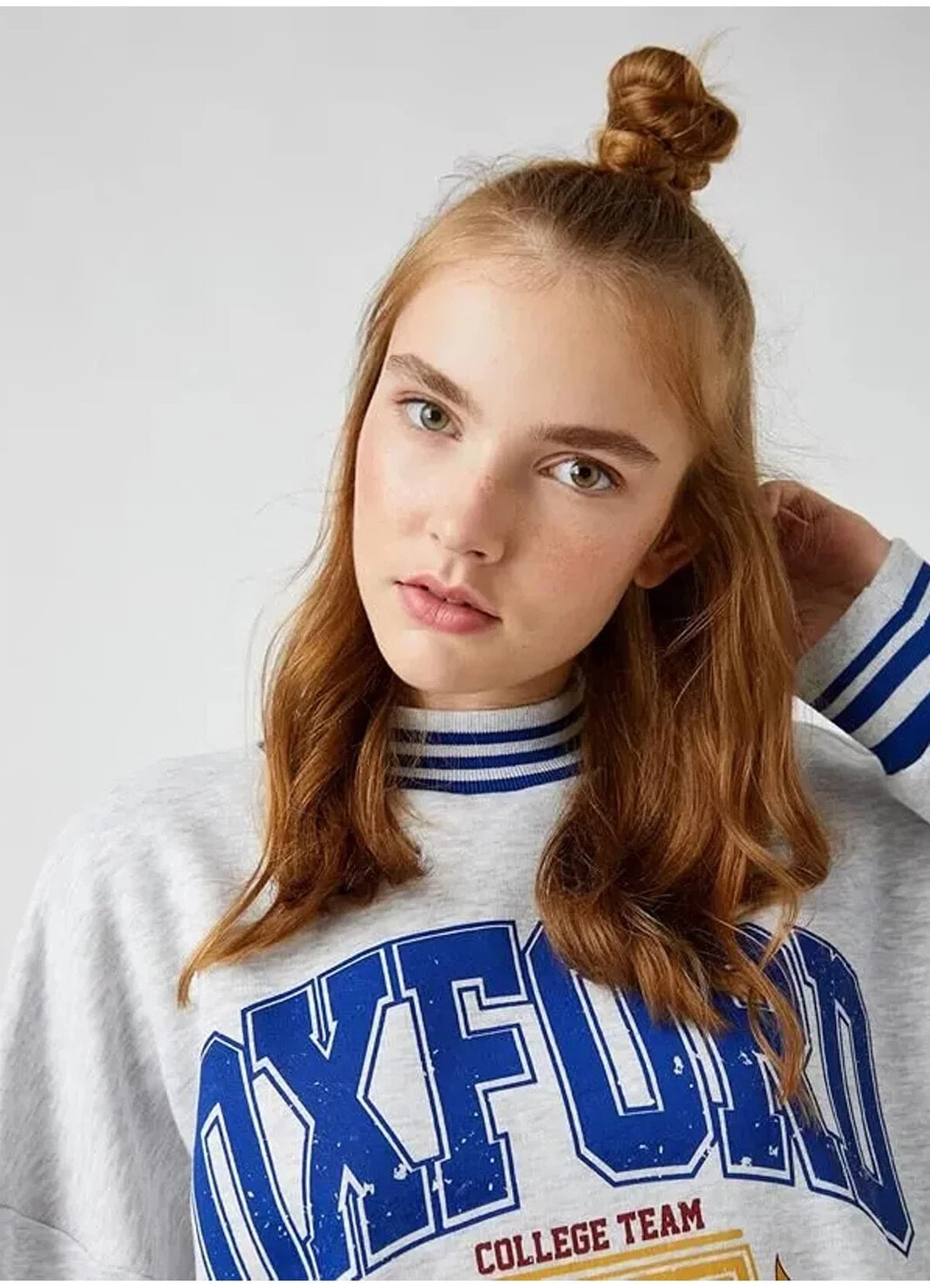 Koton Bisiklet Yaka Baskılı Kar Melanj Kadın Sweatshırt 3WAL10078IK Yaş Grubu:Kadın Cinsiyet:Kadın
