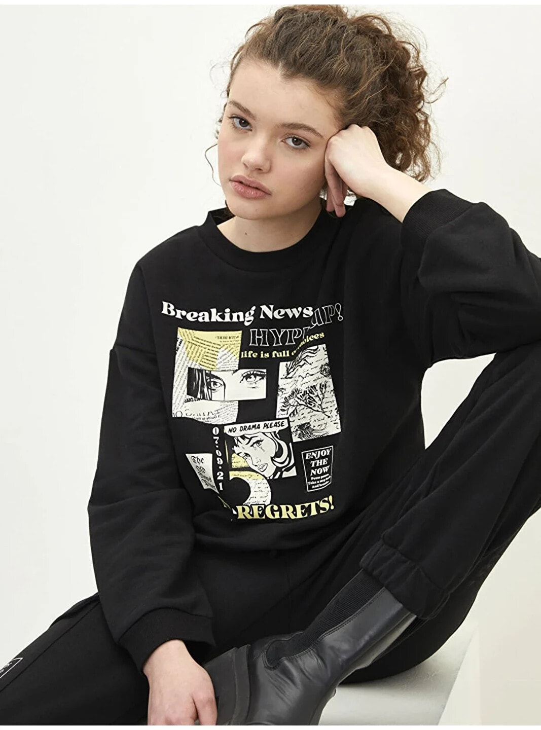 Manken Bilgisi Göğüs: 80 cm Bel: 61 cm Basen: 89 cm Boy: 178 cm Manken S beden ürün giyiyor. Ürün İçeriği ve Özellikleri Ürün İçeriği: Ana Kumaş: %57 Polyester %43 Pamuk Ürün Özellikleri: Marka: LCW Casual Ürün Tip: Sweatshirt Kalınlık: Kalın Kalıp: Standart Desen: Baskılı / Desenli Yaka: Bisiklet Yaka Kol Boyu: Uzun Kol Kumaş: Sweatshirt Kumaşı Cinsiyet: Kadın Stil: Casual/Günlük