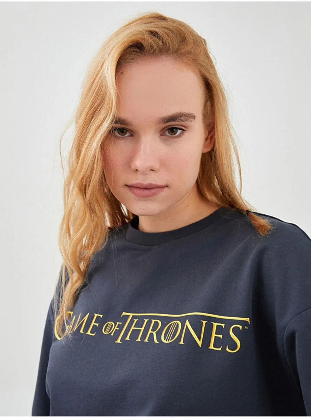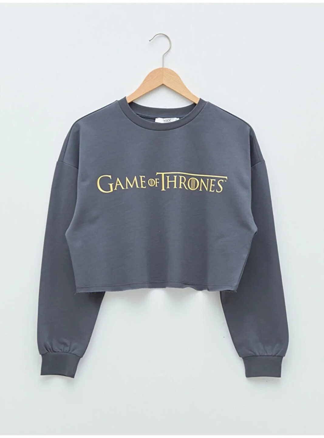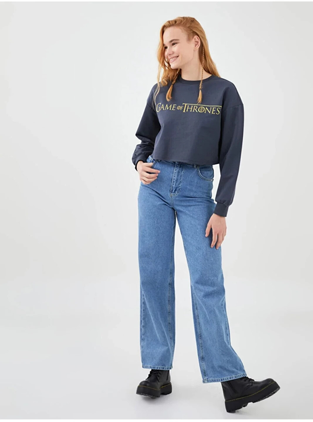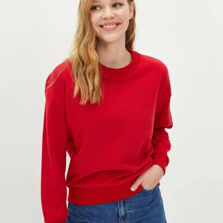 Bisiklet yaka baskılı uzun kollu kadın sweatshirt
