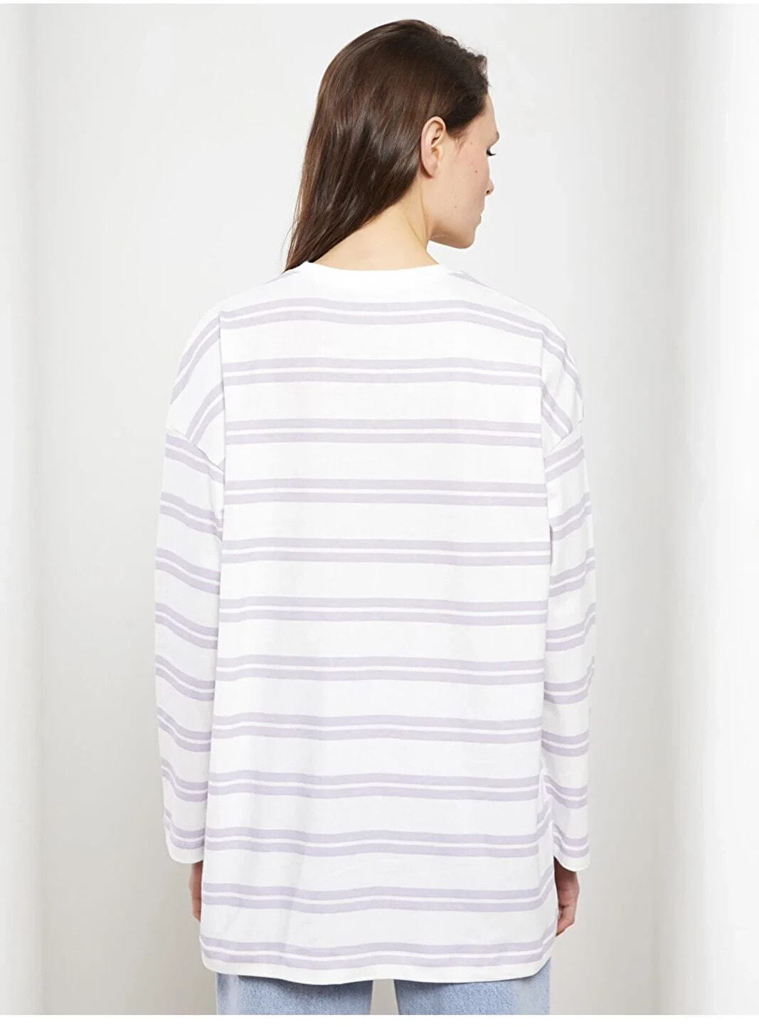 Bisiklet Yaka Çizgili Uzun Kollu Pamuklu Kadın Tunik