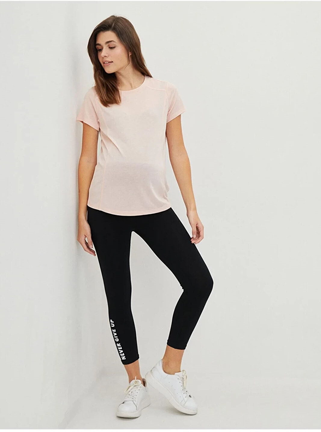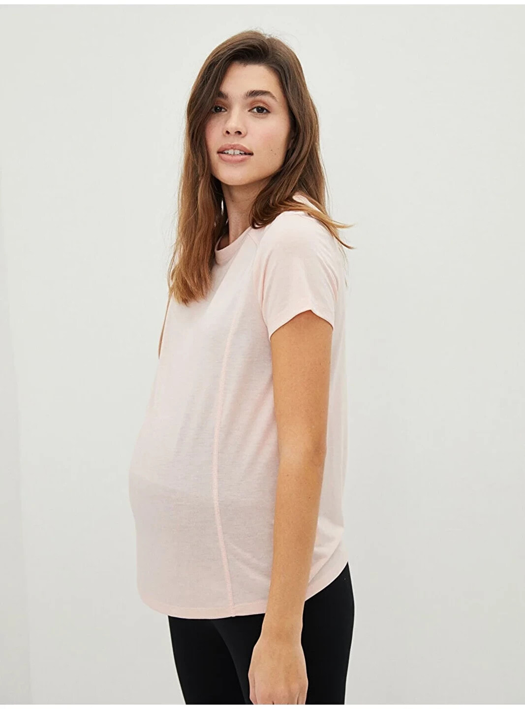 Bisiklet Yaka Düz Kısa Kollu Hamile Tişört