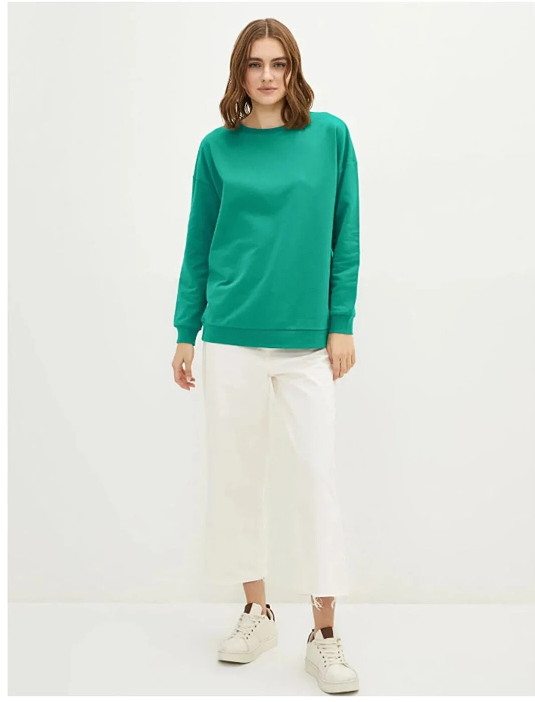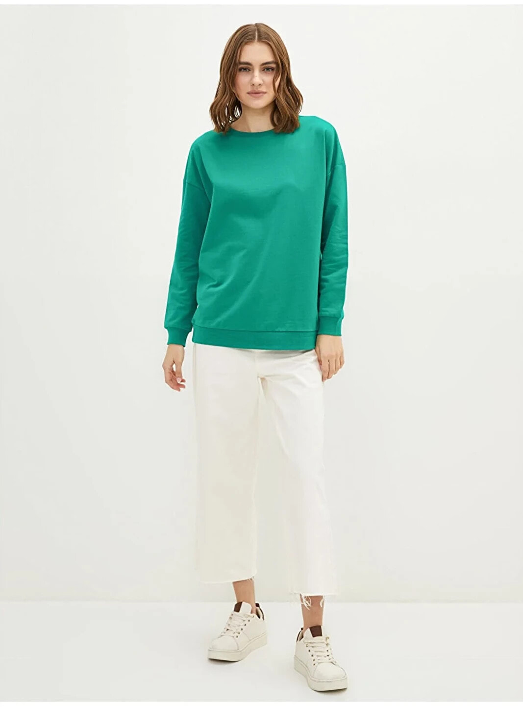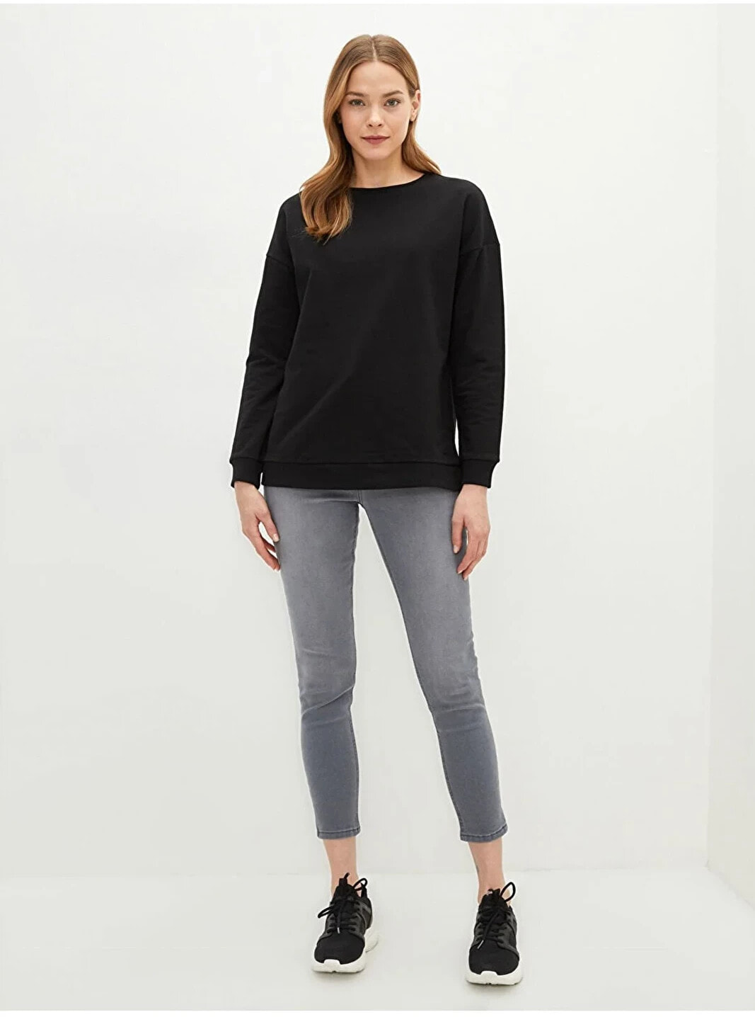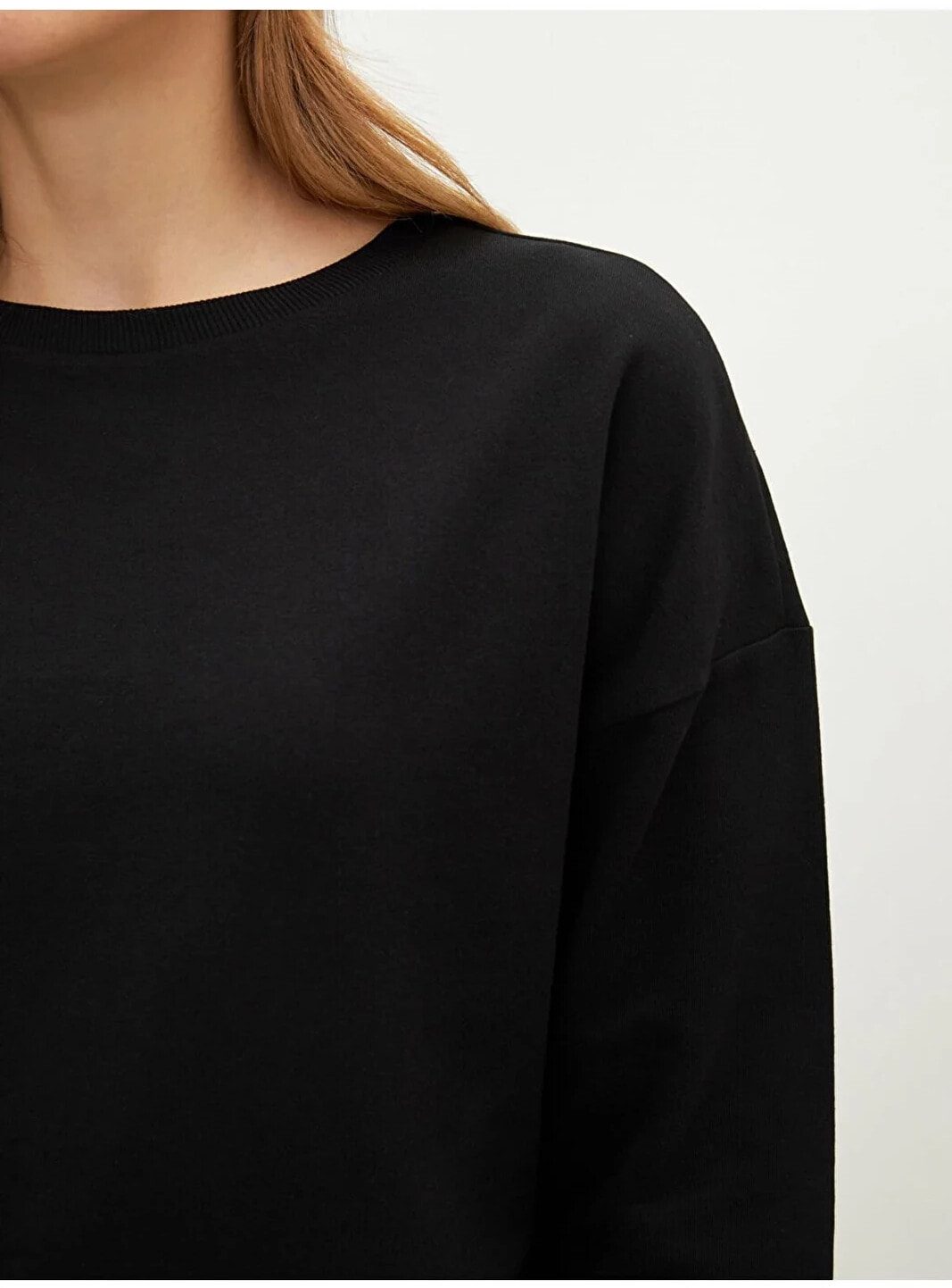 Bisiklet Yaka Düz Uzun Kollu Kadın Sweatshirt