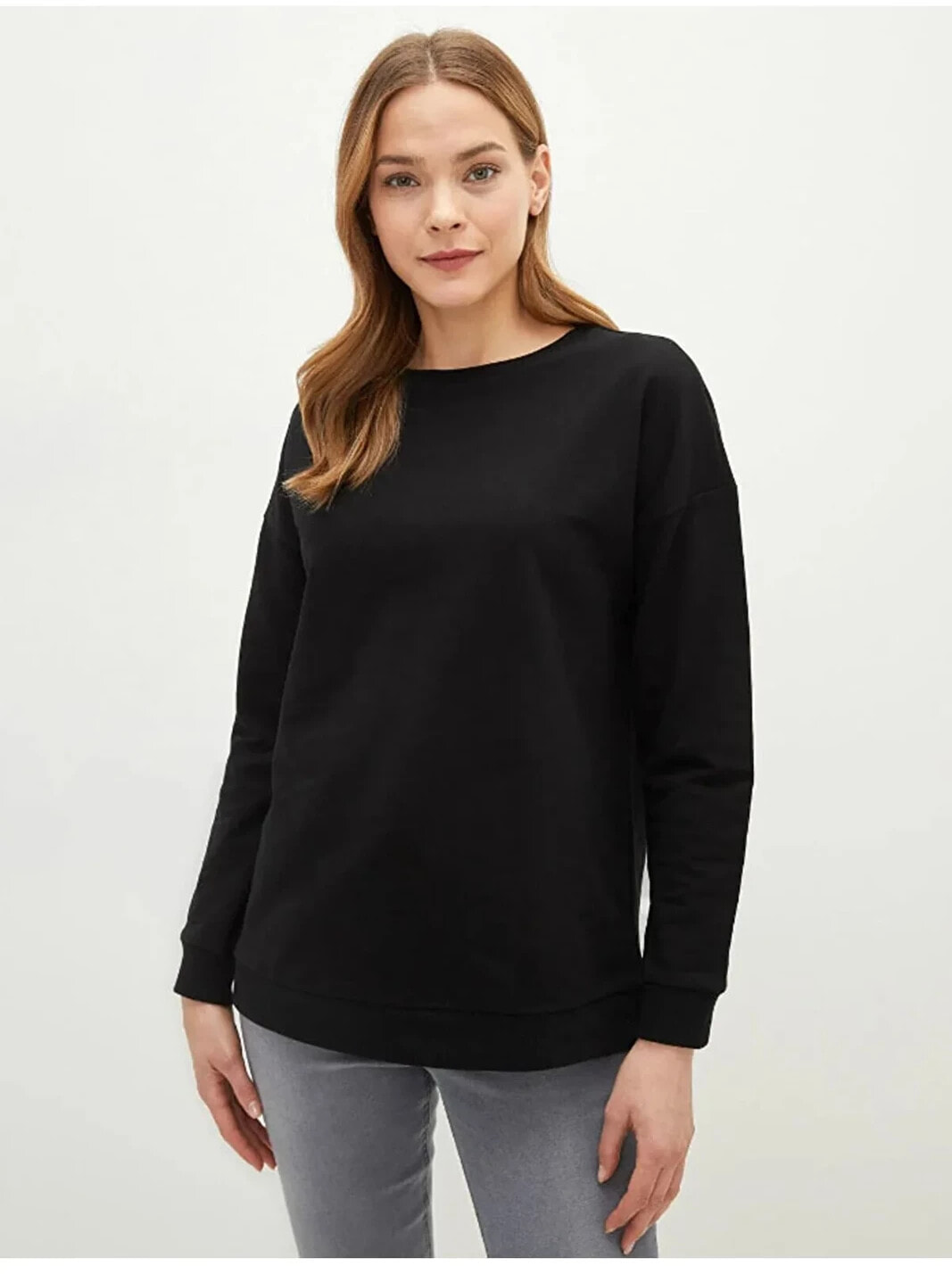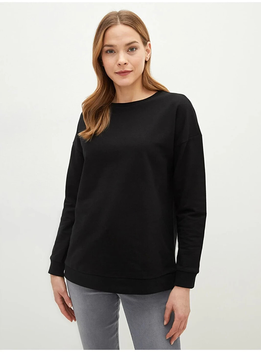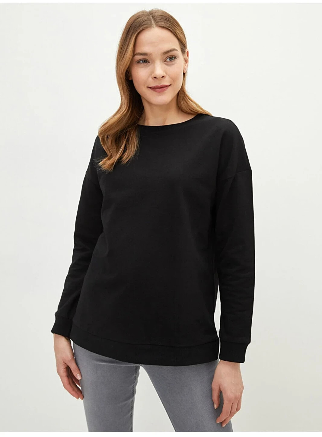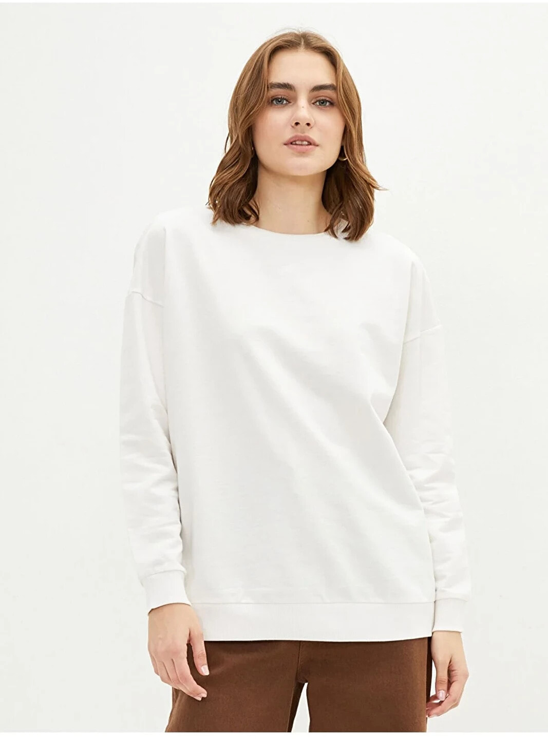 Bisiklet Yaka Düz Uzun Kollu Kadın Sweatshirt