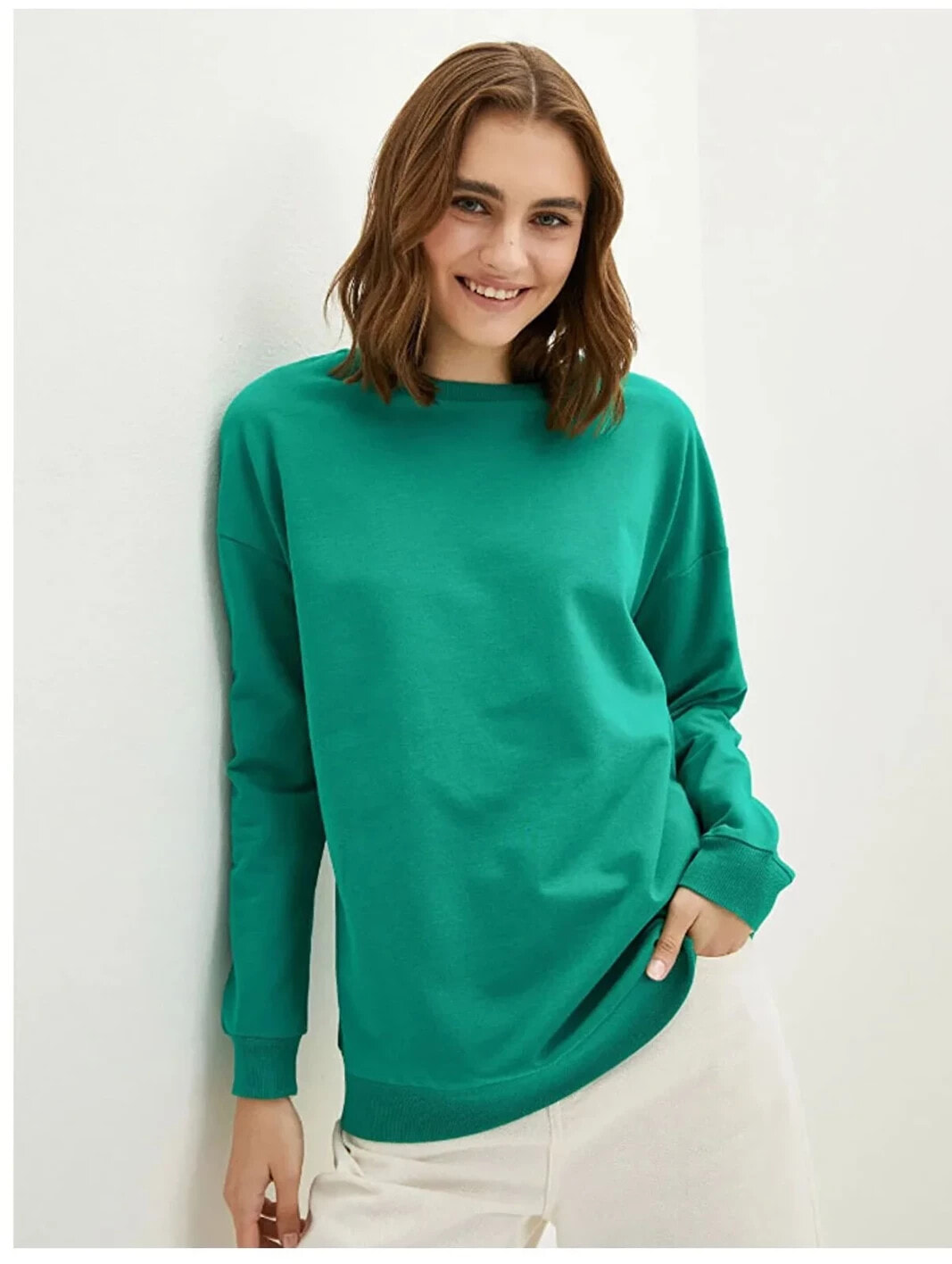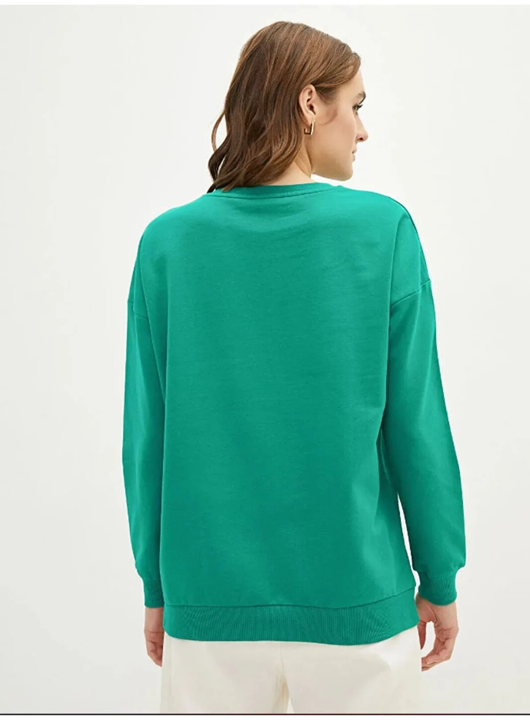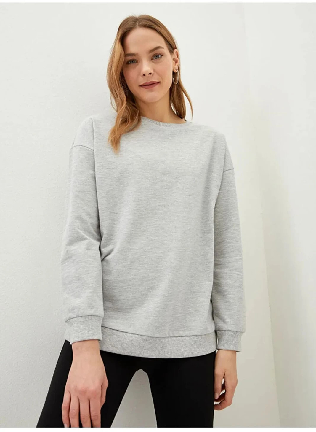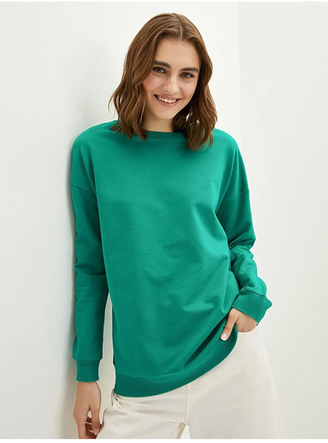 Bisiklet Yaka Düz Uzun Kollu Kadın Sweatshirt