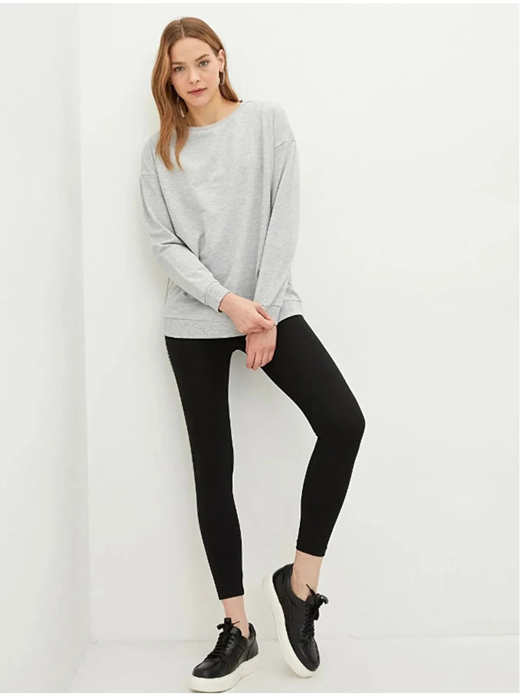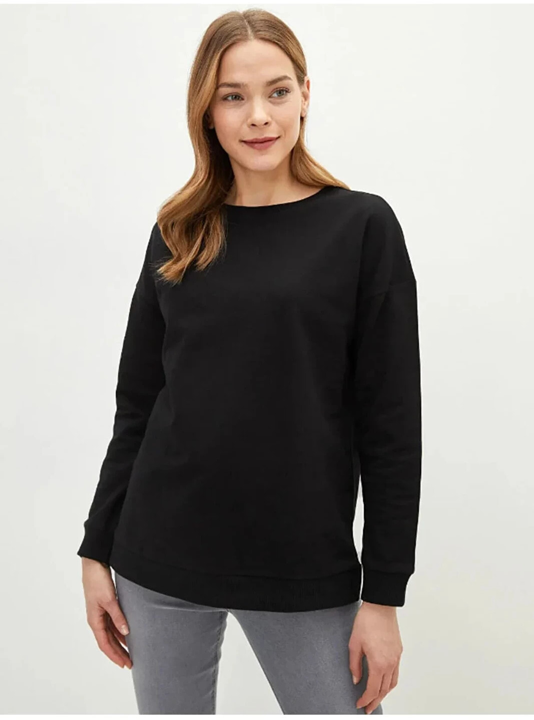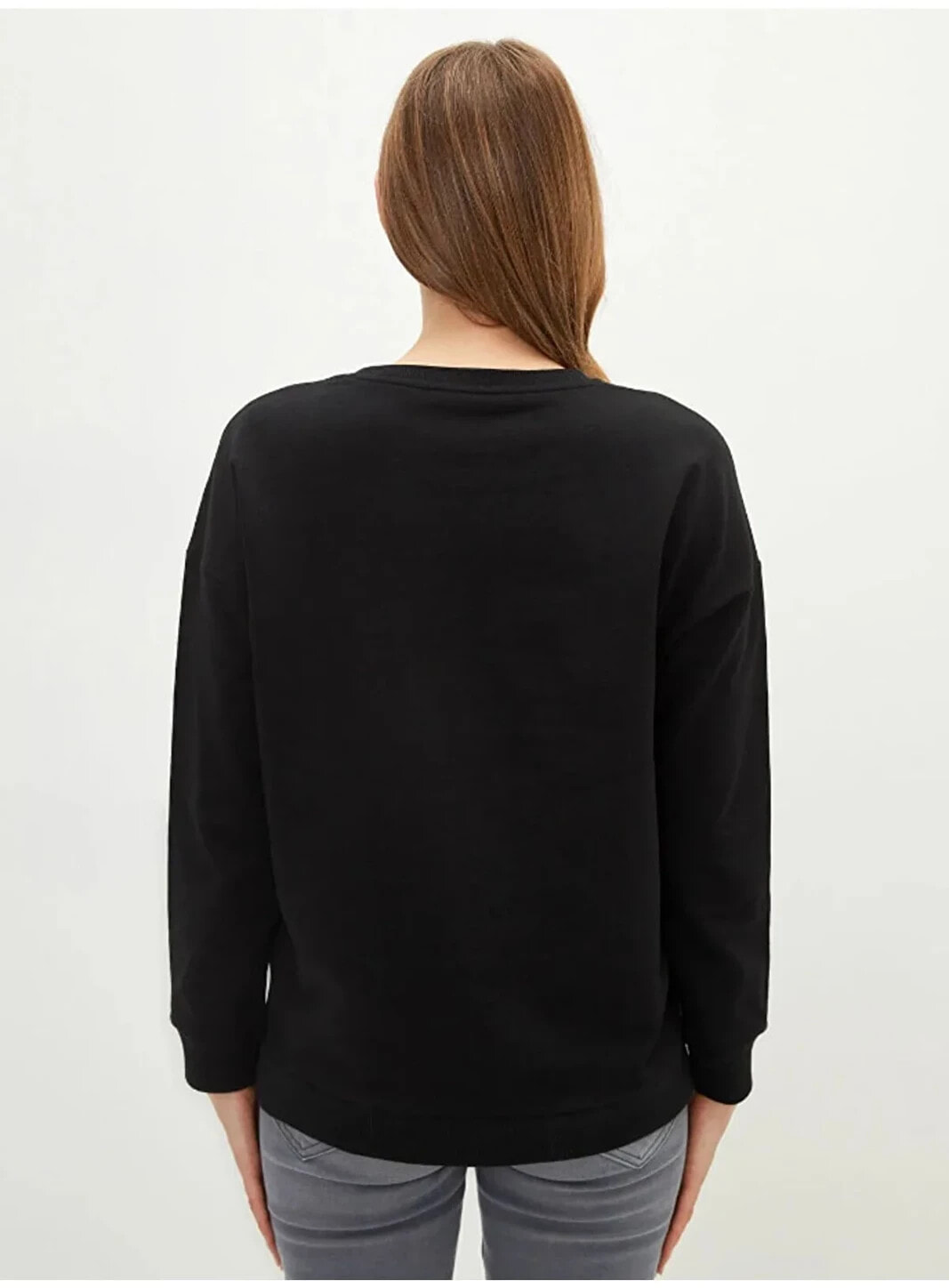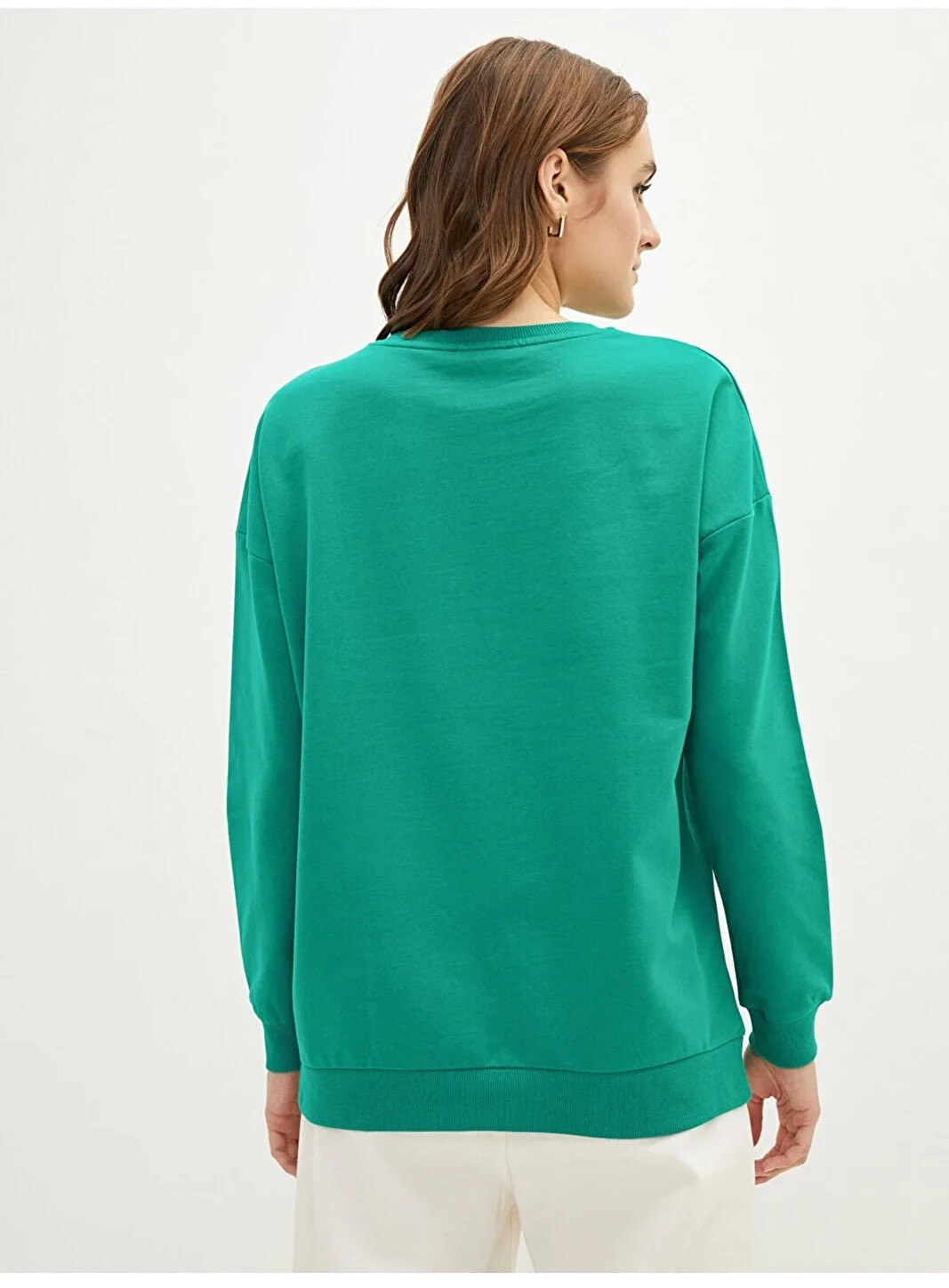 Bisiklet Yaka Düz Uzun Kollu Kadın Sweatshirt