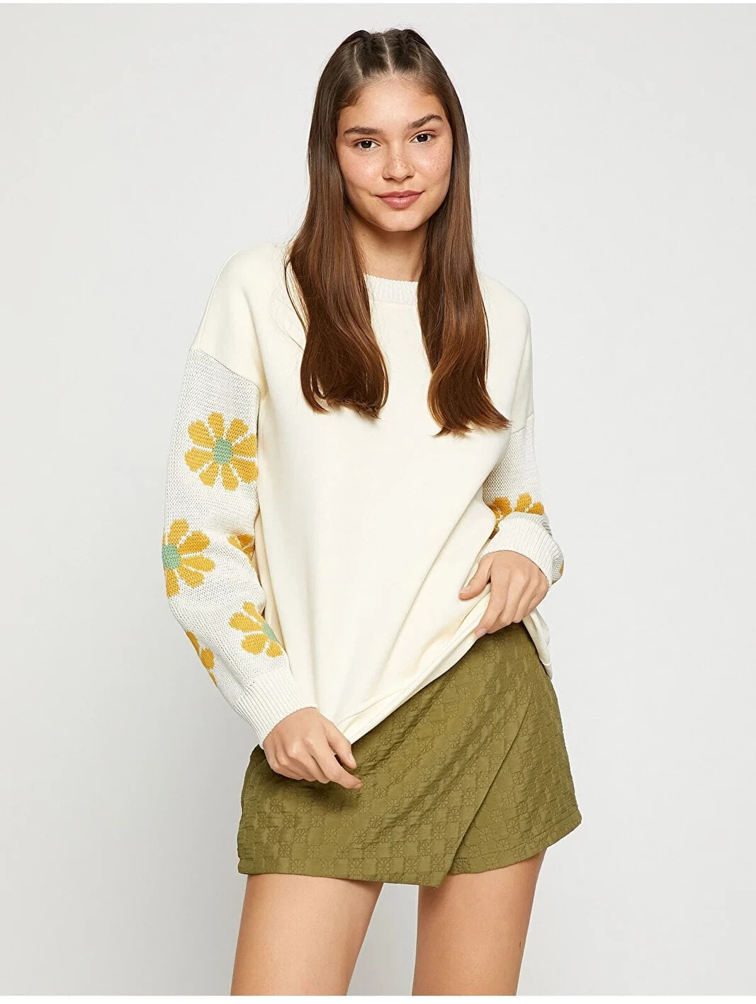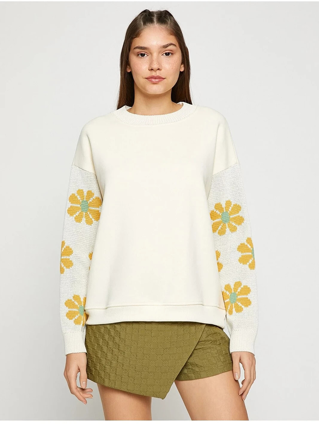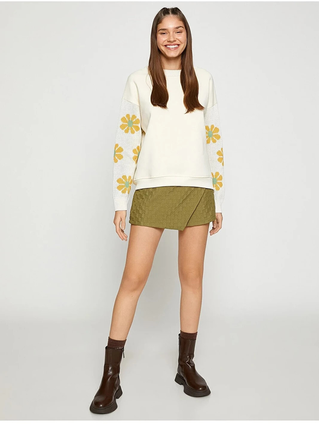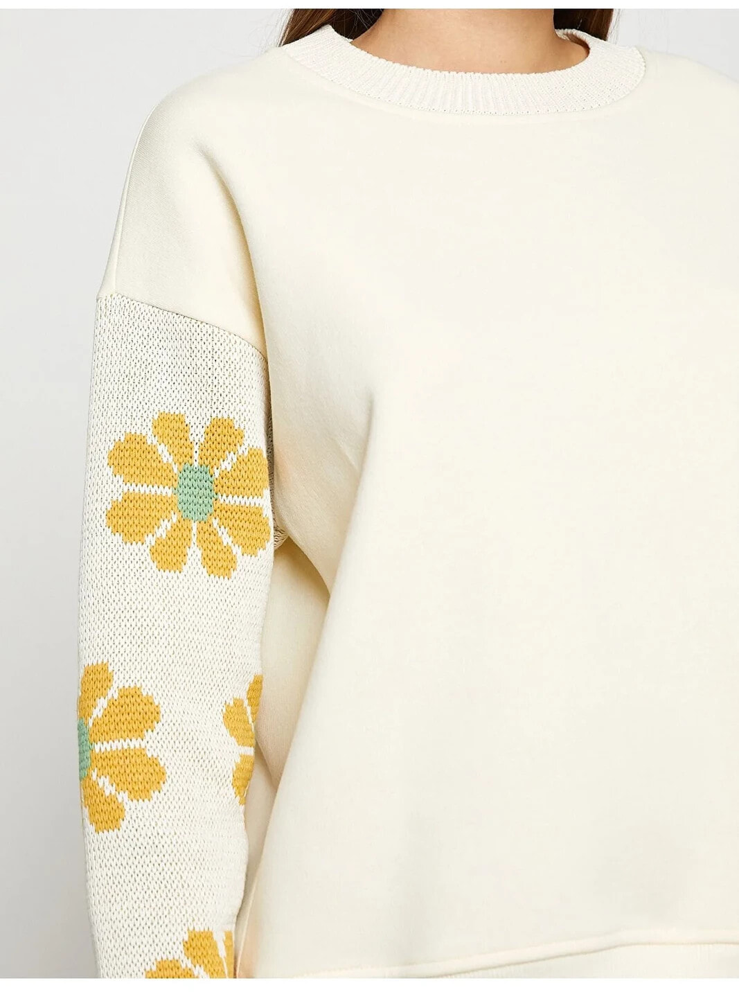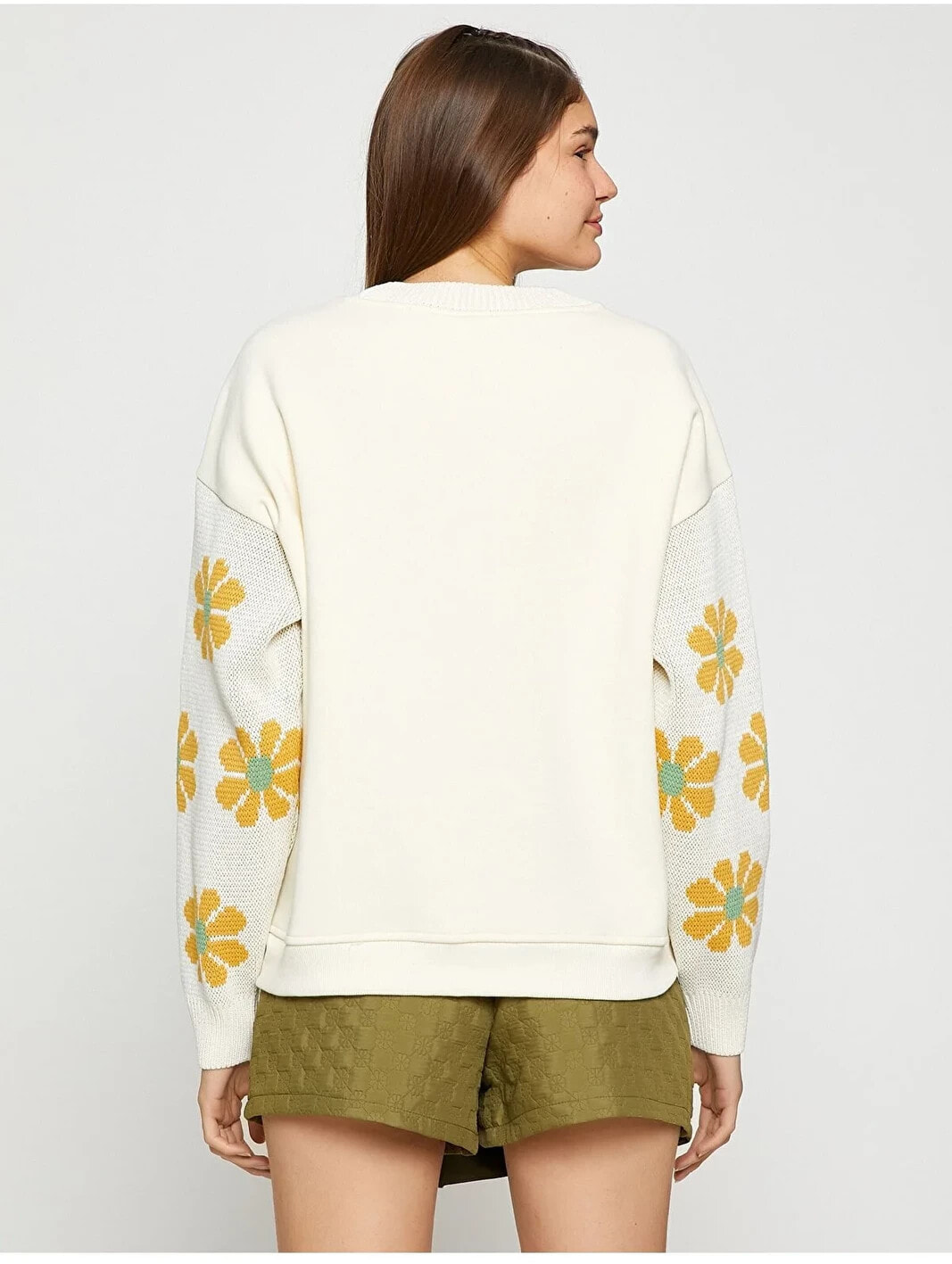 Sweatshirtler günlük giyimin anahtar parçalarındandır! Kolları çiçek detaylı, bisiklet yaka, uzun kollu sweatshirt