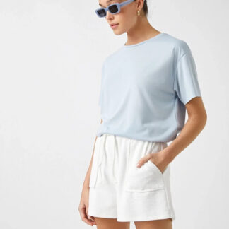 Tişört modasında trendleri yakalamayı ertelemeyin! Kısa kollu, bisiklet yaka, viskoz karışımlı tişört ile kot pantolon ya da mini eteklerinizle eşsiz bir bir uyum yakalayabilirsiniz.