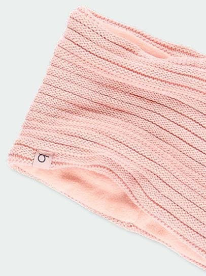 Knitted cowl for girls in pink, fleece inner. Decorated with a label with brand detail.