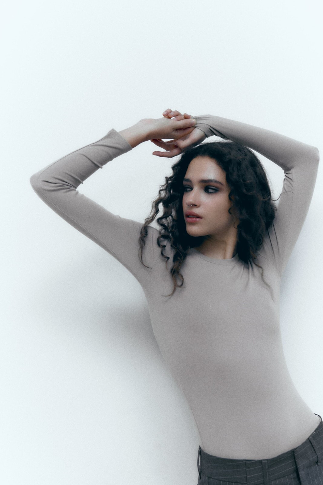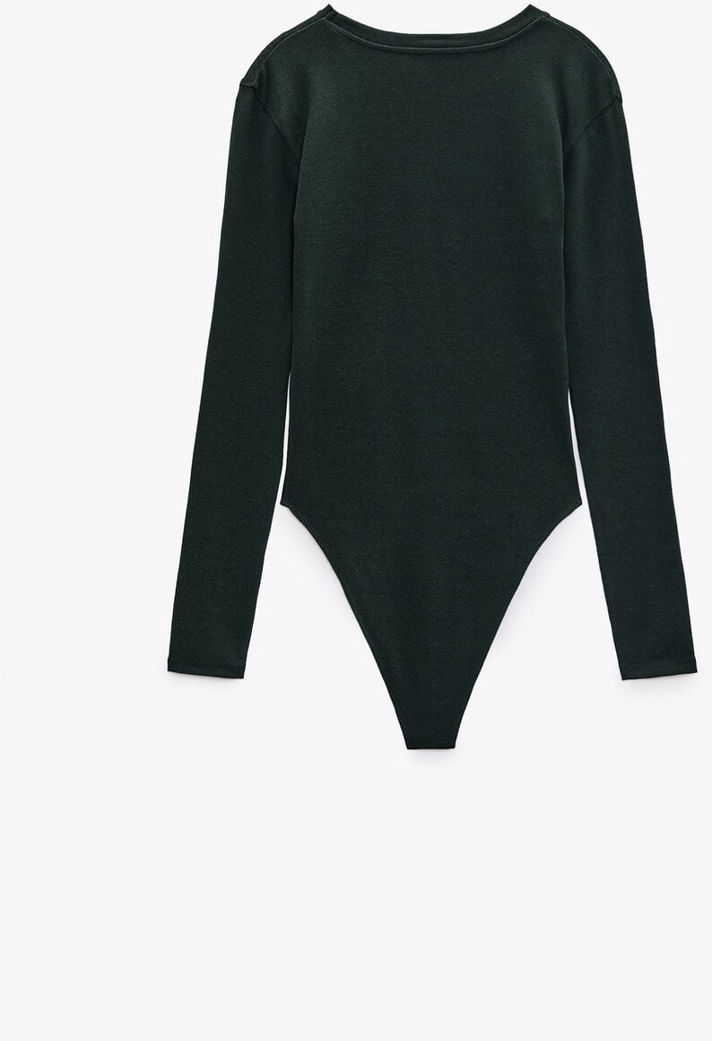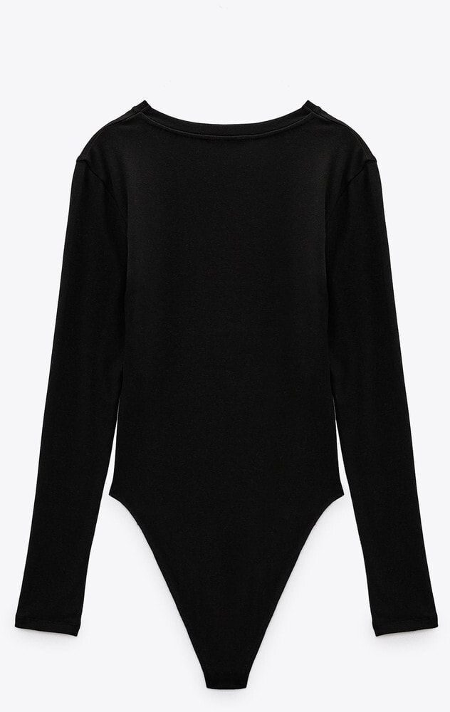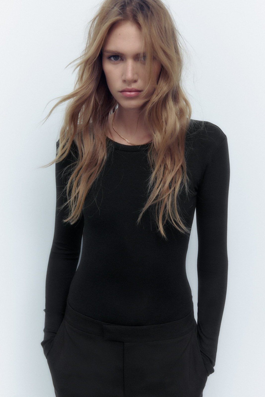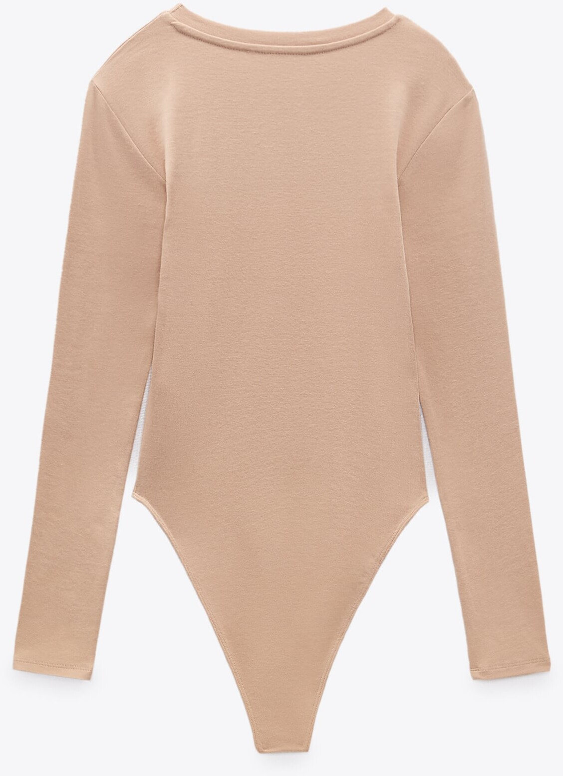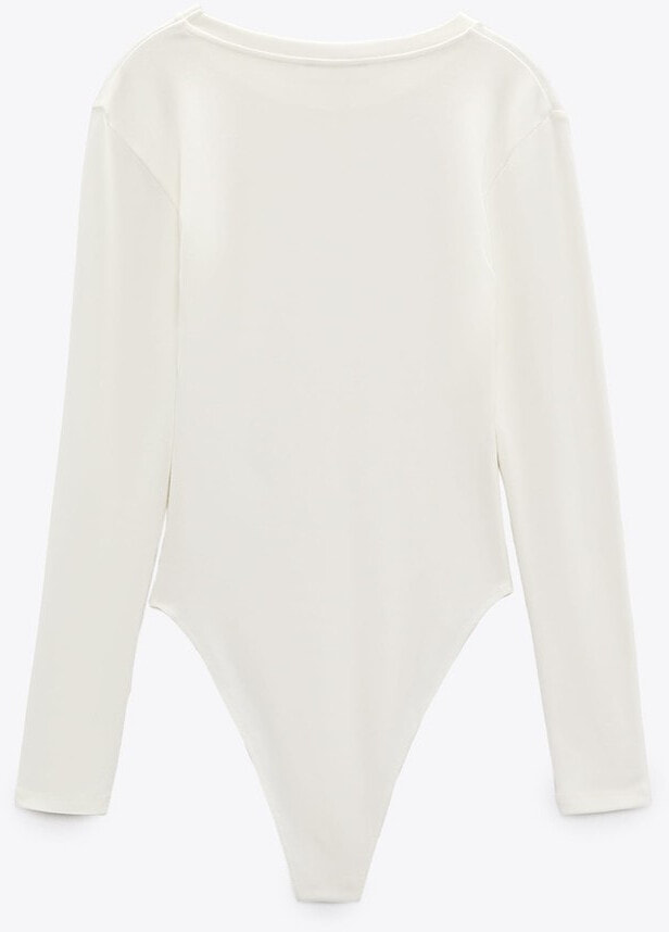 Боди из смесовой вискозы с круглым вырезом и длинными рукавами. Застегивается на кнопки снизу.