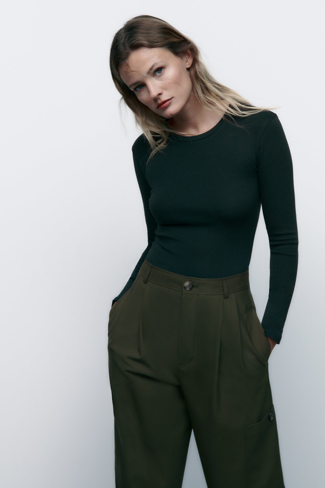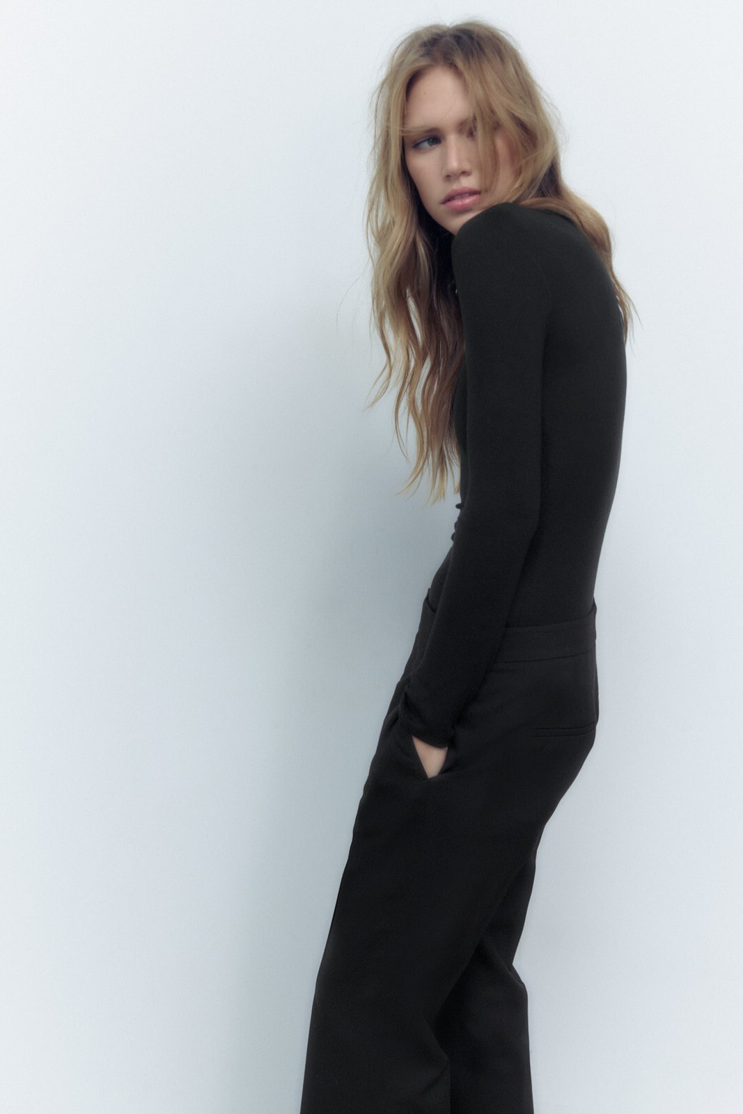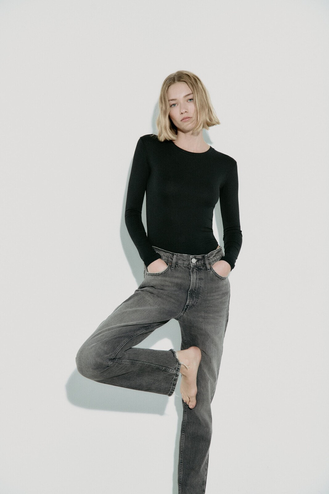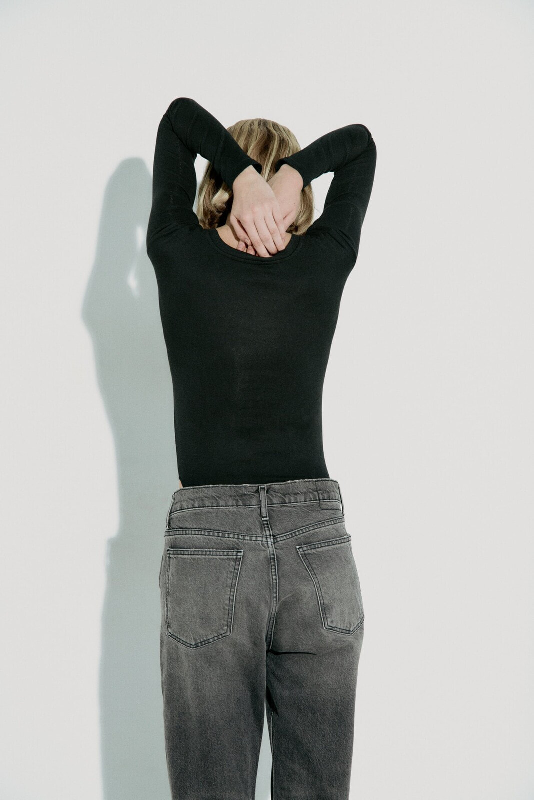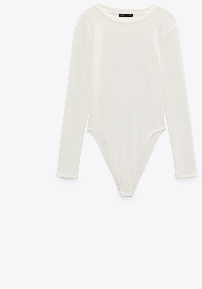 Боди из смесовой вискозы с круглым вырезом и длинными рукавами. Застегивается на кнопки снизу.
