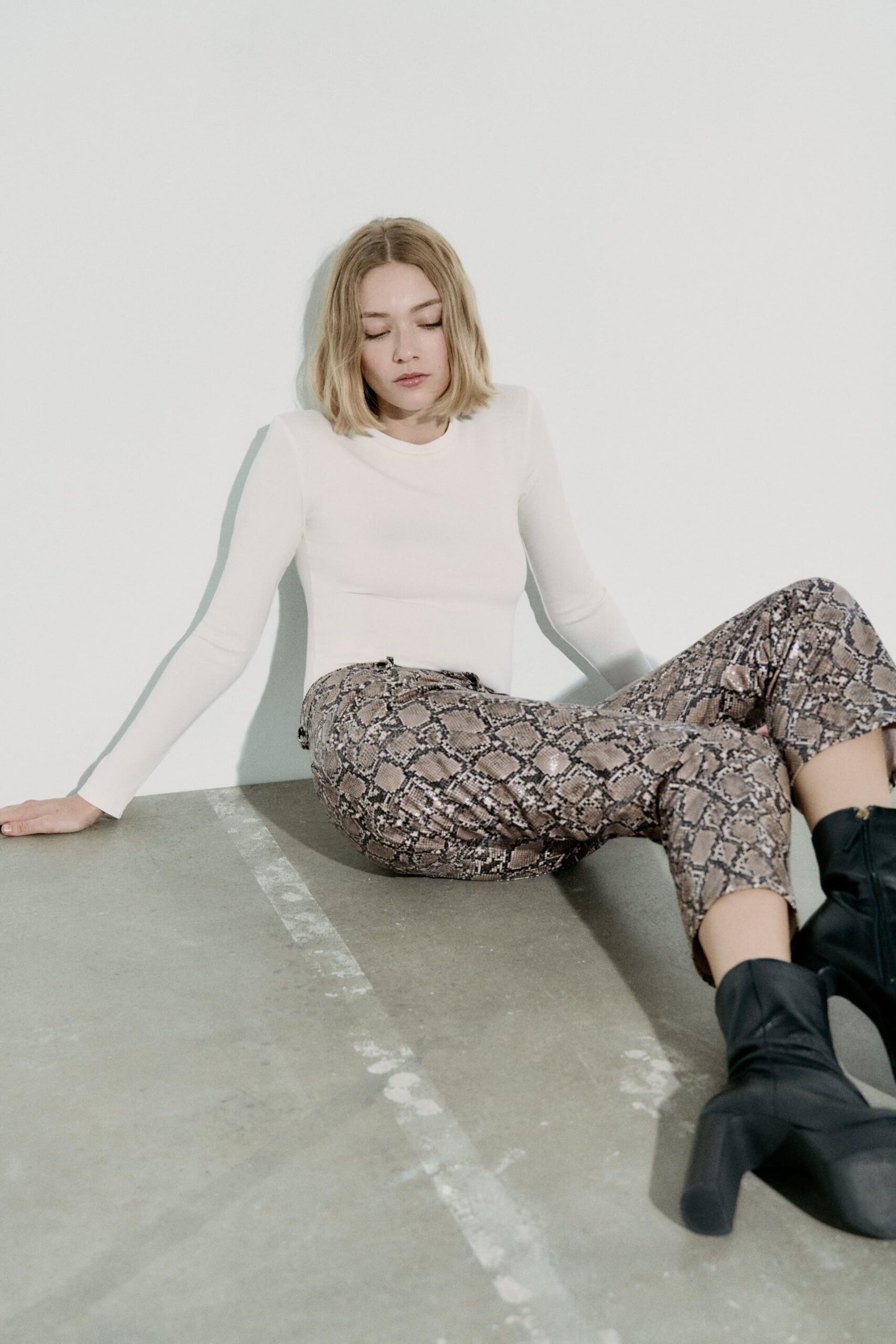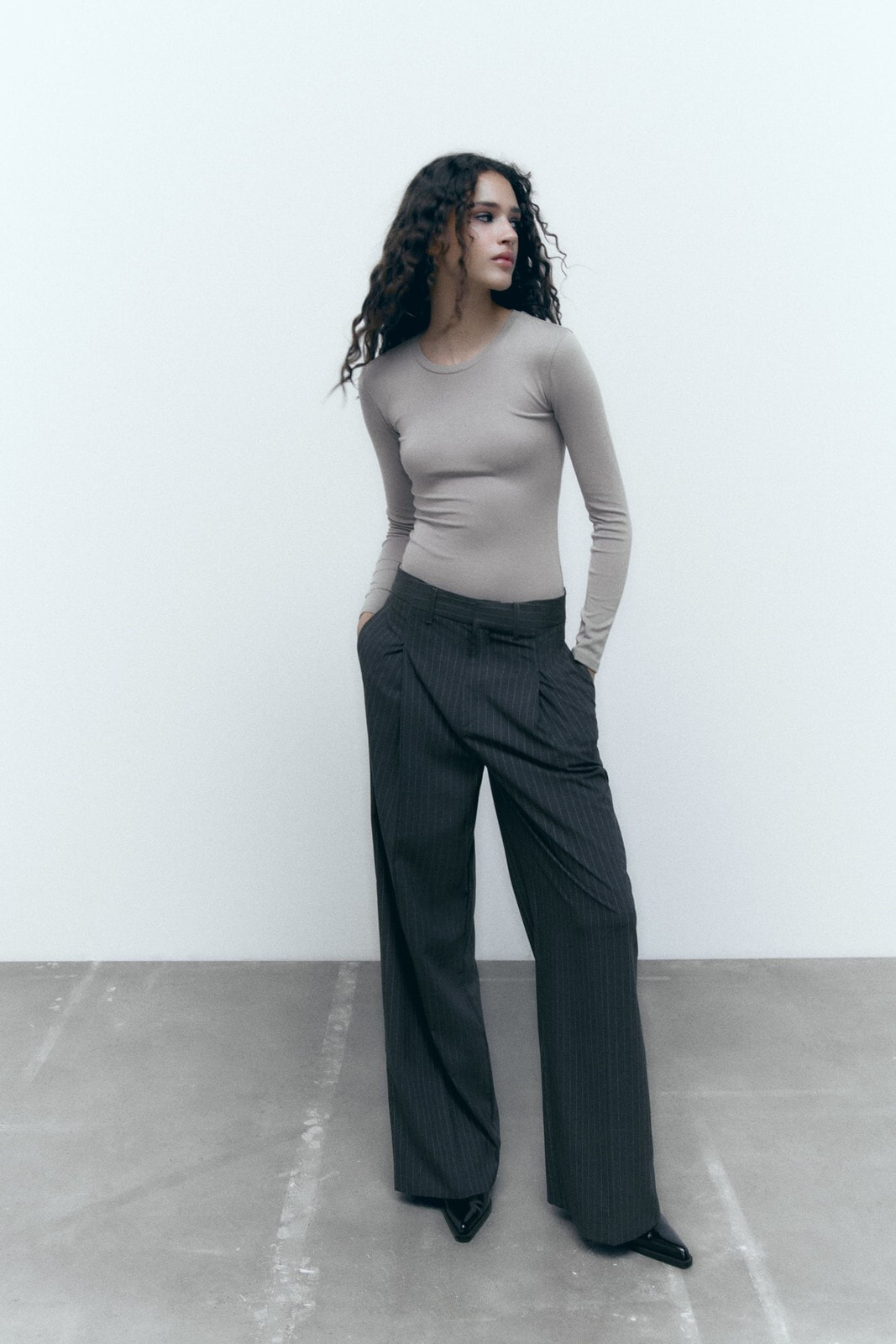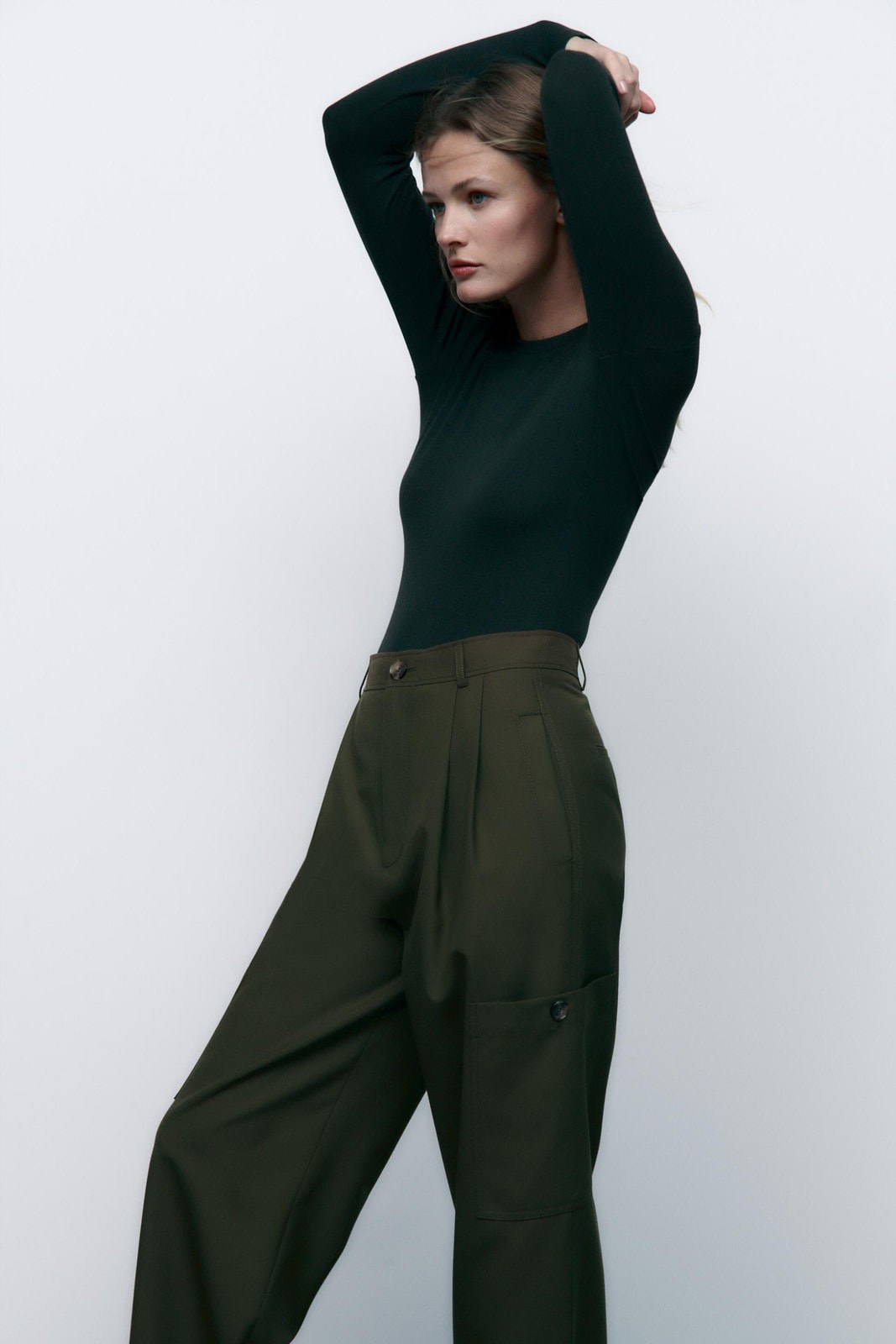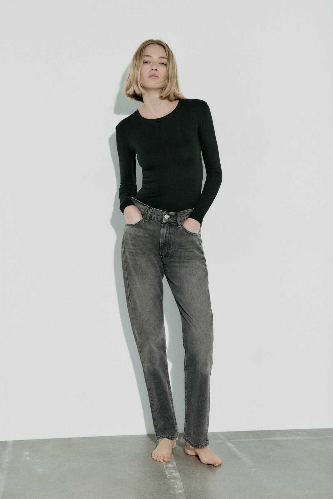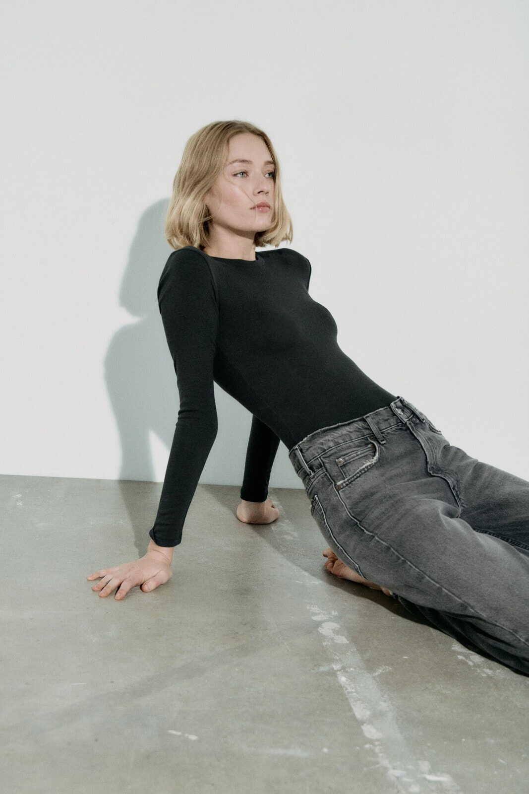 Боди из смесовой вискозы с круглым вырезом и длинными рукавами. Застегивается на кнопки снизу.