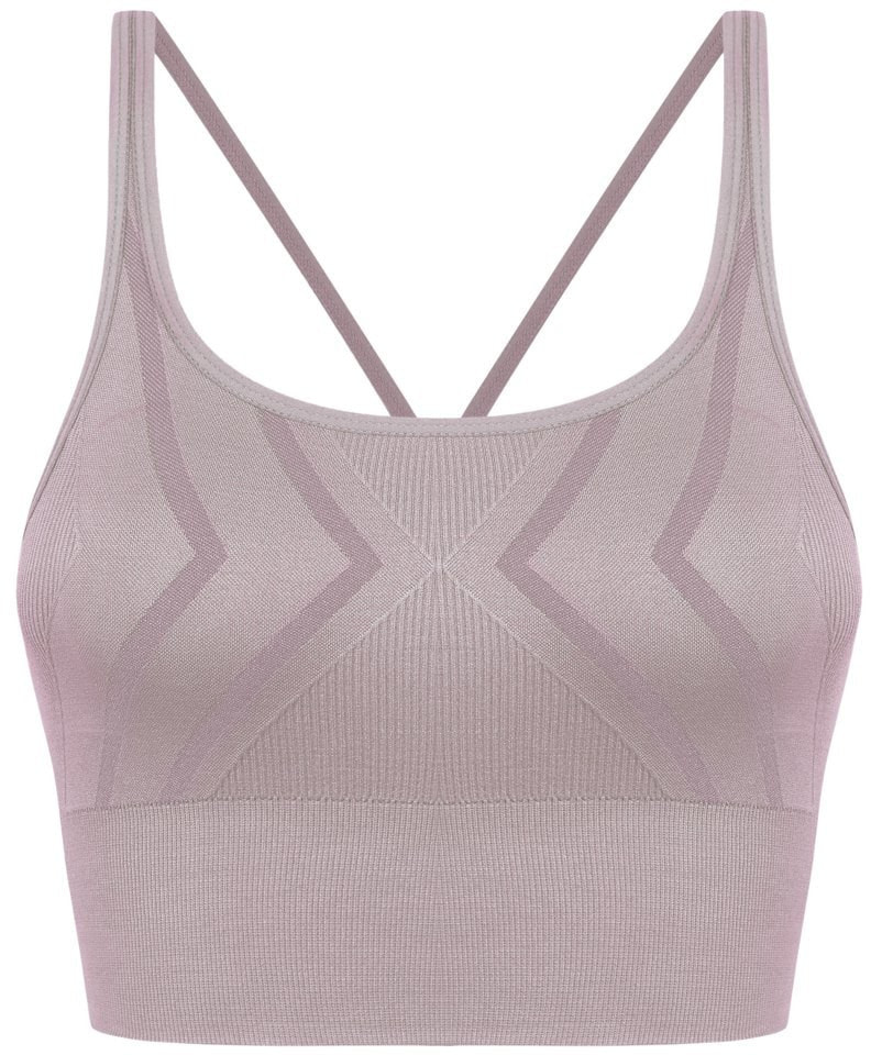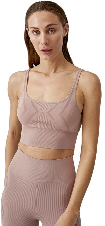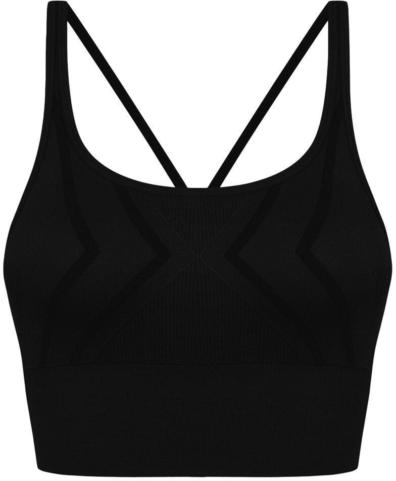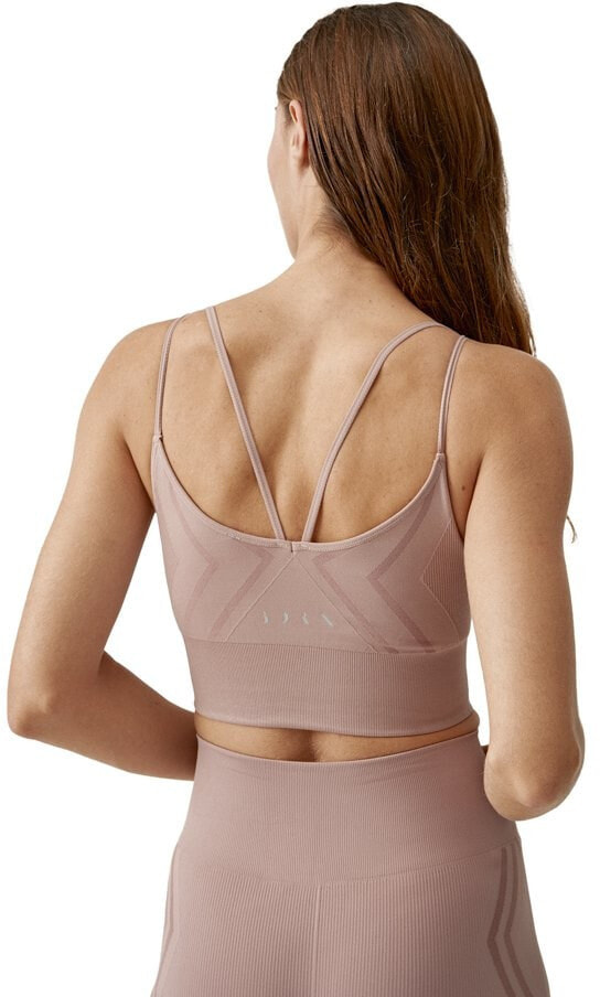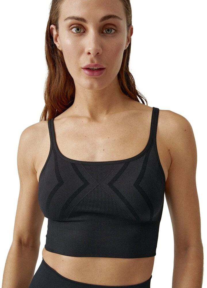 Semi-open neckline and mid-width straps delicately woven at the back for a better fit and comfort.