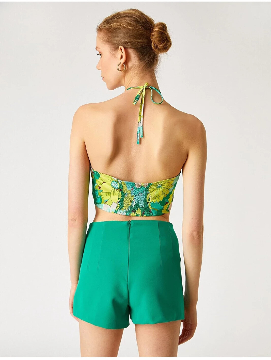 Desenli, pencere detaylı, boyundan bağlamalı büstiyer. Model Bilgileri: Boy:176 cm, Göğüs:83, Bel:63, Kalça:89, Modelin Bedeni:S