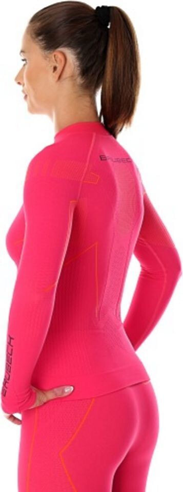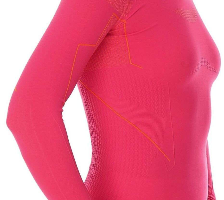 Bezszwowa damska bluza wykonana z dwuwarstwowej dzianiny z zastosowaniem BTP i przędzy Nilit Heat tworzonej na bazie węgla kawowego uzyskiwanego z łupin ziaren kawy. Znakomite właściwości w zakresie utrzymywania ciepła, termoregulacji i oddychalności sprawiają, że bluza doskonale sprawdza się szczególnie do uprawiania sportów w okresie zimowym i przejściowym.