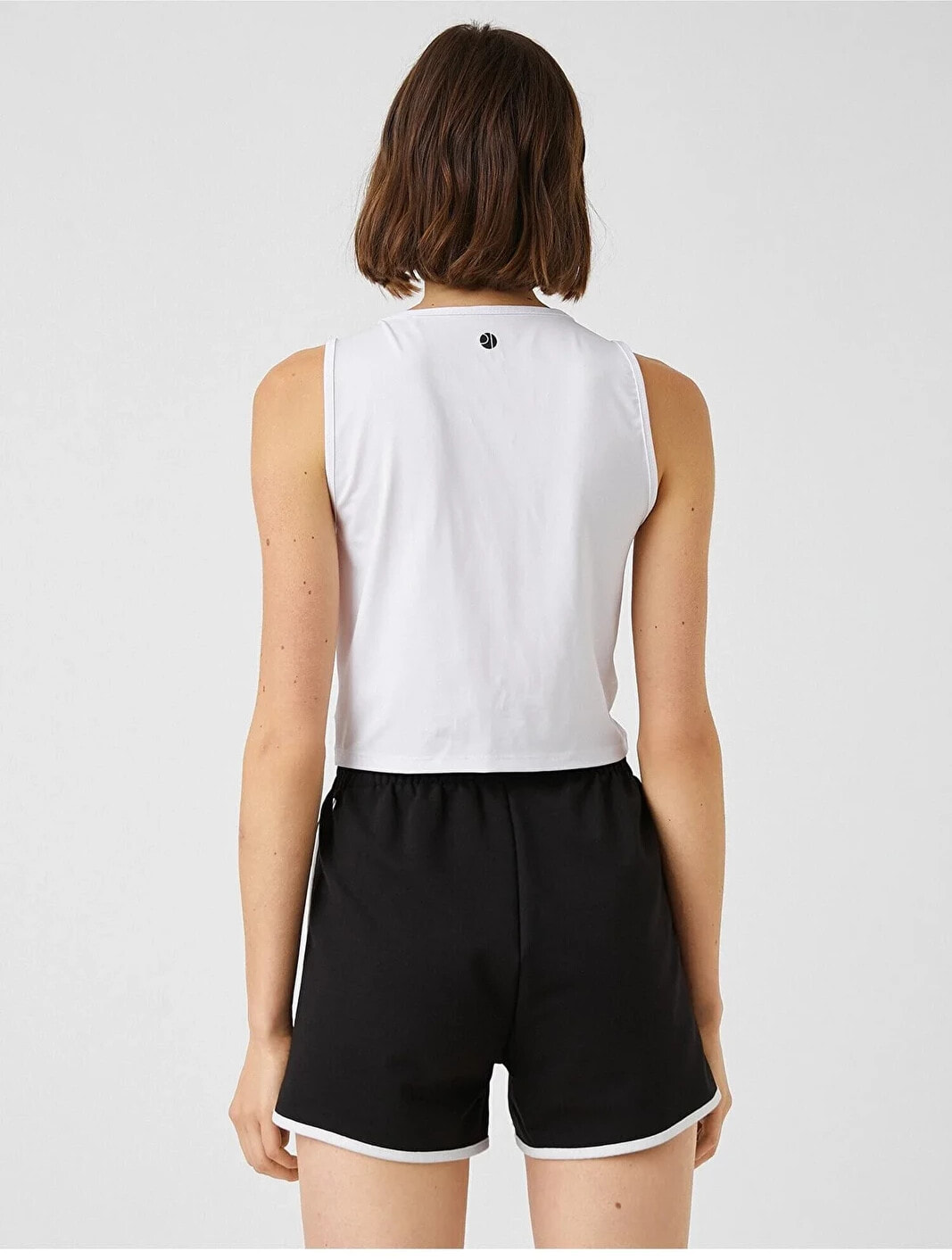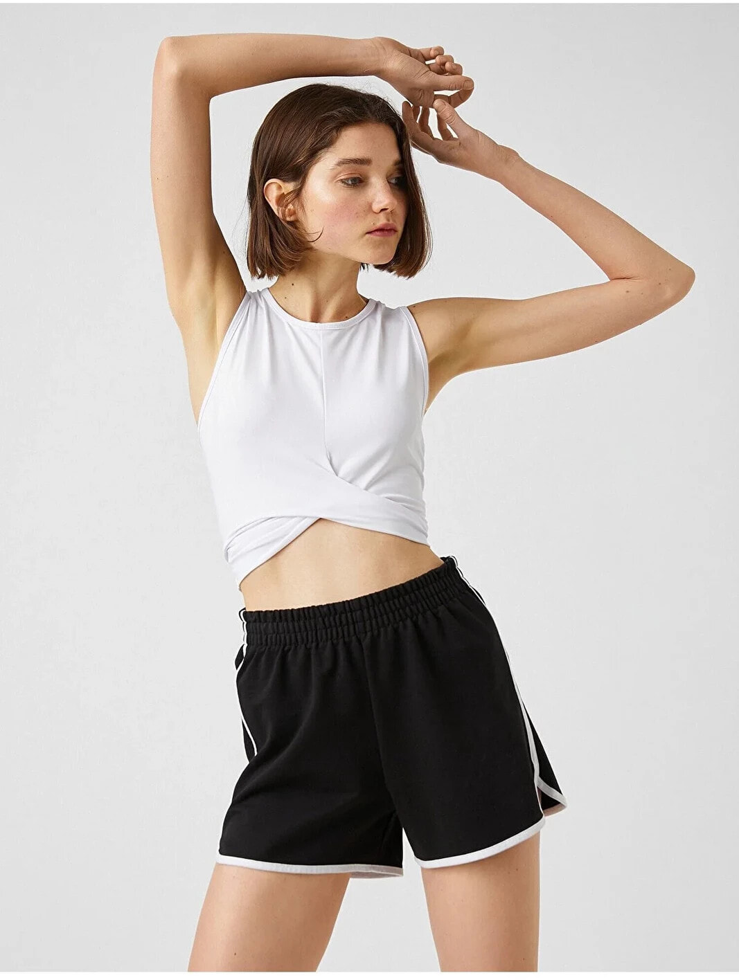 Büzgülü Spor Crop Atlet Model Bilgileri: Boy:175 cm, Göğüs:76, Bel:58, Kalça:1, Modelin Bedeni:S