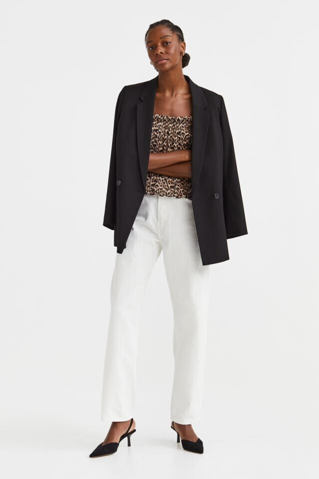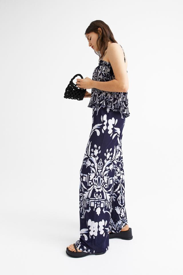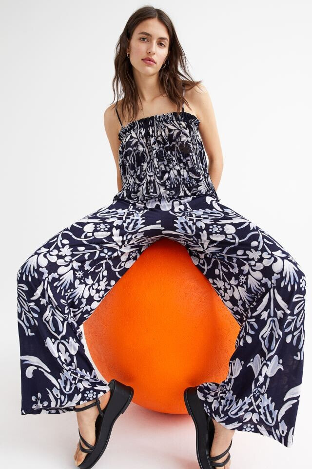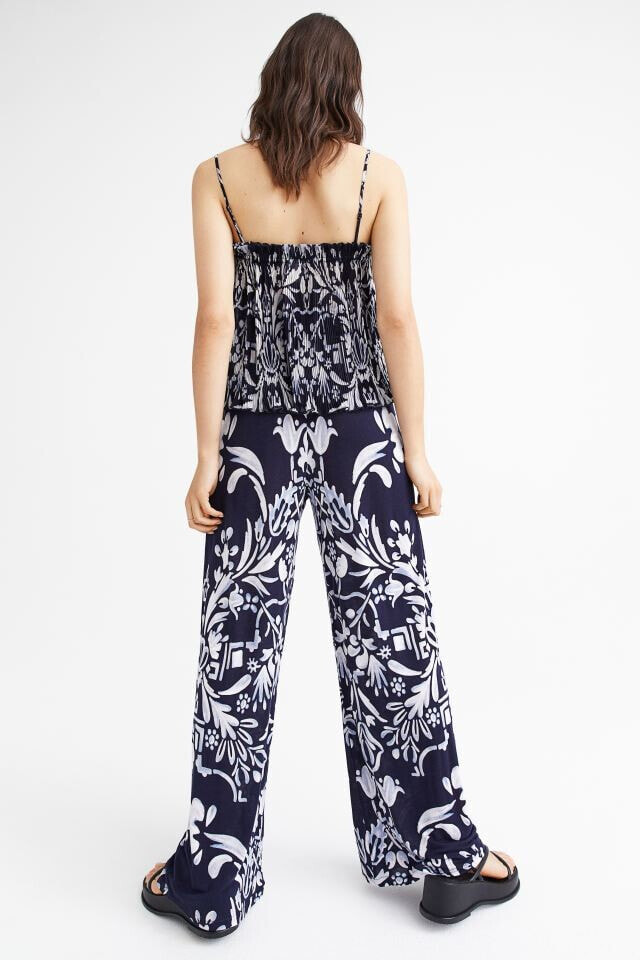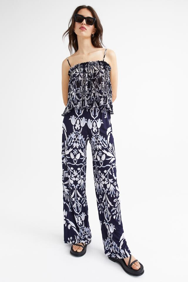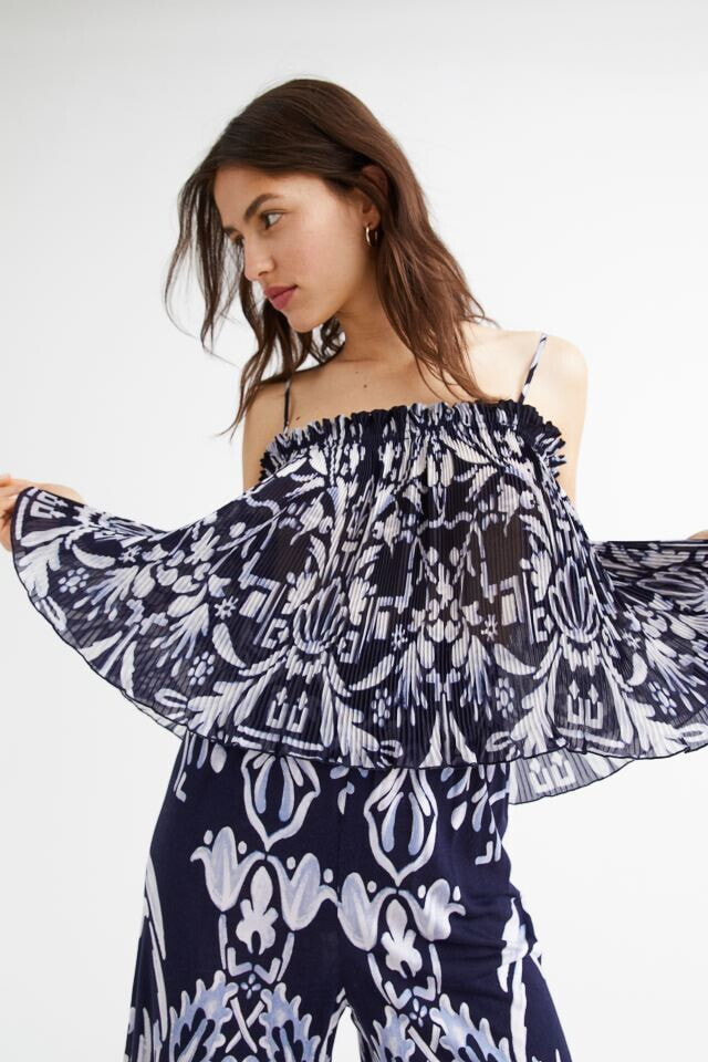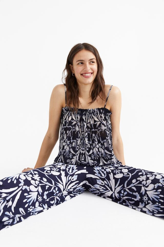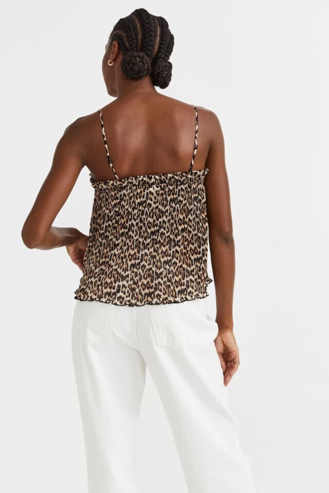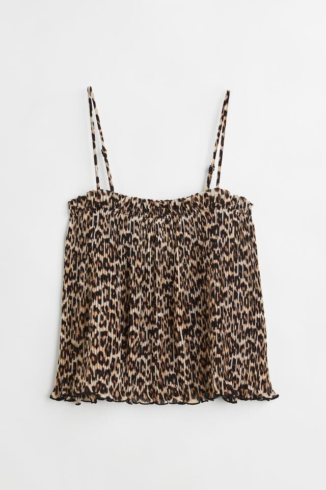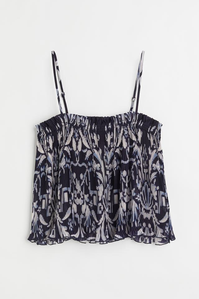 Straight-cut, sleeveless top in airy chiffon with extra-narrow, adjustable shoulder straps. Ruffle-trimmed upper edge with gathers and covered elastic. Overlocked hem.