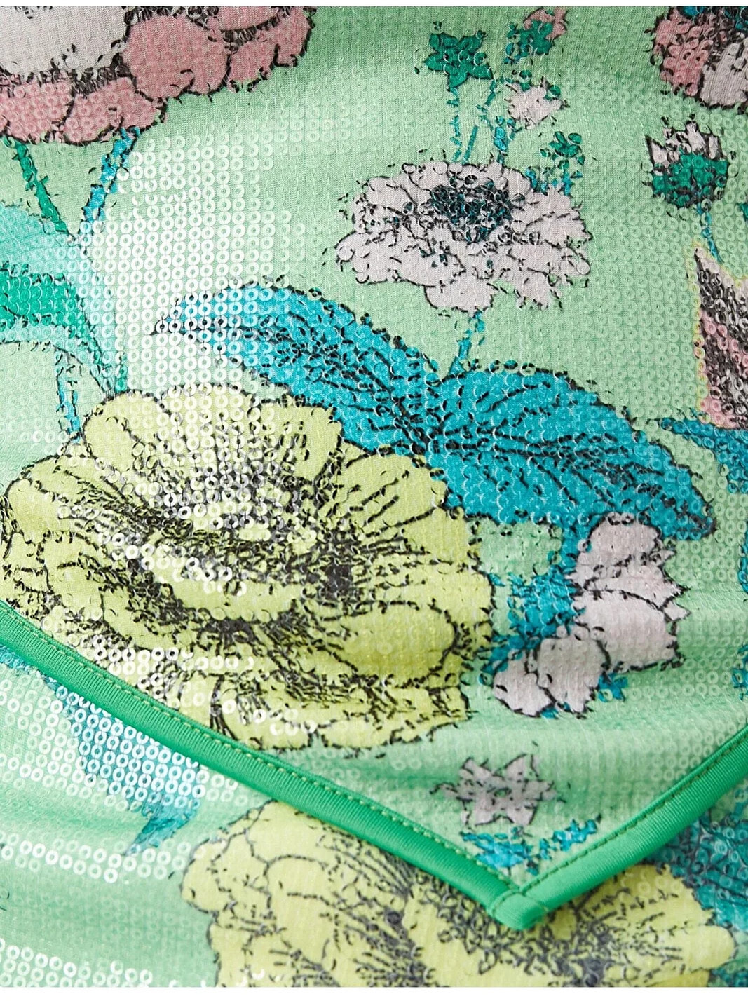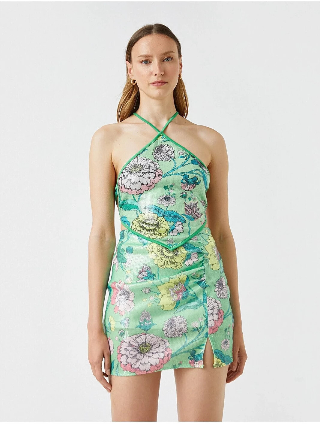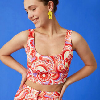 Sırtı bağlama detaylı, çiçekli, crop atlet.